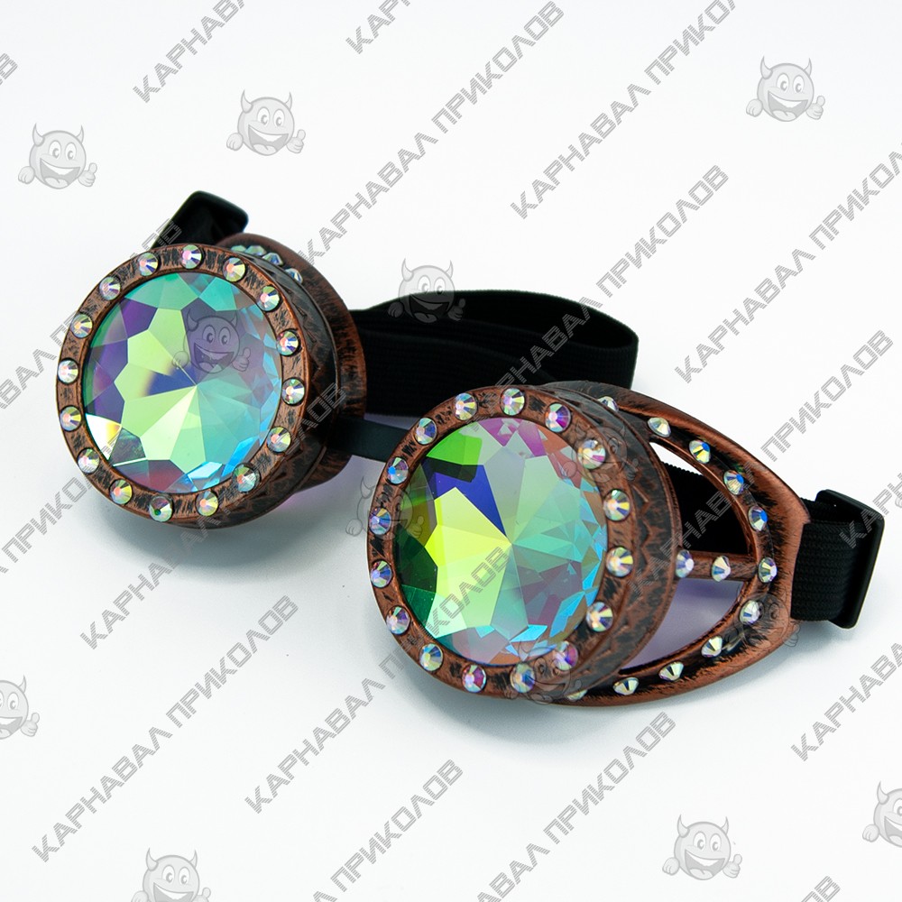 Очки Стимпанк Гогглы Калейдоскоп со стразами заклепками (медь антик) W-XZ04