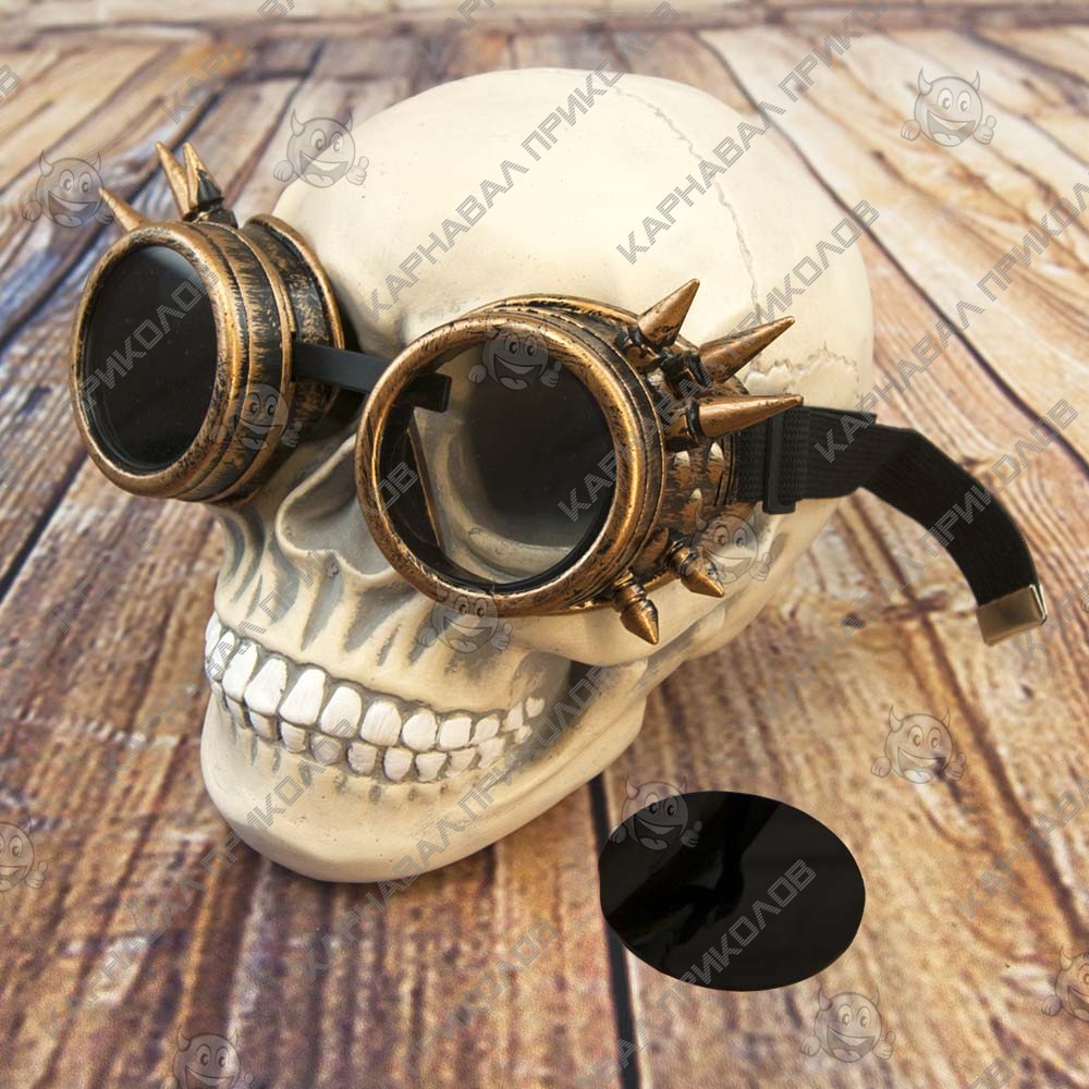 Задумали интересный образ Steampunk на корпоратив, фотосессию, свадьбу или тематическую вечеринку? Интересуют карнавальные очки для вечеринки по дропшиппингу? Тогда интернет магазин Карнавал Приколов представляет Вам Очки Стимпанк Гогглы Премиум с шипами (медный) - стильные и оригинальные очки в готическом стиле. Линзы состоят из 2 стекл, черного и прозрачного. Корпус очков в стиле Стимпанк изготовлен из качественного пластика со специальным покрытием и 5 шипами разных размеров. Фиксируются очки при помощи черной регулируемой резинки. В отличие от исторических гогглов, стимпанк гогглы уже не являются защитным аксессуаром, а выполняют декоративную функцию. Самое главное, чего пытаются добиться мастера, создающие стимпанк очки, это соответствие атмосфере викторианской эпохи и паровых машин. Оптовый интернет магазин карнавальных аксессуаров предлагает Вам купить пластиковые очки для party-вечеринок, карнавала! Они создадут настоящий праздник и море хорошего настроения! Еще больше карнавальных аксессуаров для корпоратива, костюмированной вечеринки, фотосессии вы найдете на нашем сайте. Остались вопросы? Тогда закажите звонок на сайте, и наш менеджер свяжется с Вами в указанное время.