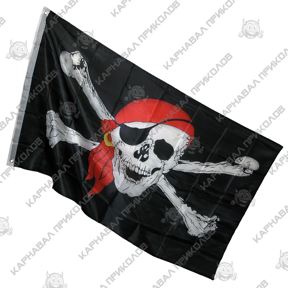 Пиратский Флаг 150х90см - неотъемлемый атрибут для декора пиратской вечеринки. На черном фоне флага расположен белый череп Веселый Роджер с красной банданой и золотой сережкой. Имеются 2 отверстия для фиксации флага размером 150х90см. Дополнить образ пирата можно с помощью Карнавальный костюм Разбойник для мужчин или Карнавальный костюм Разбойница для женщин, шляпой Пират с повязкой или Пирата фетр. Среди разнообразия карнавальных шляп интернет магазин Карнавал Приколов представляет Вам линейку пиратских шляп треуголок: Шляпа Пирата Веселый Роджер треуголка, Шляпа Пирата треуголка фетр, Шляпа Пирата фетр и для милых дам Шляпа Пиратки с кружевом. Ни один корсар и пиратская разбойница не останется без костюма. Наш магазин предлагает товары оптом и для дропшипперов, вы можете оформить заказ на сайте Карнавал Приколов и задать любые интересующие вопросы менеджеру, заказав звонок на нашем сайте
