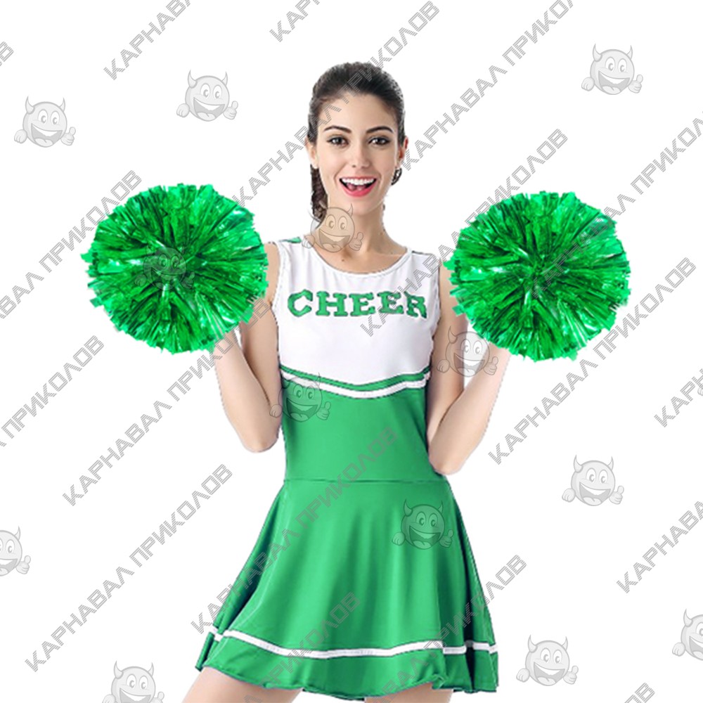 Помпон для чирлидинга Круглый с кольцами для пальцев 1шт (зеленый) - помпоны для чирлидинга и танцев Pom-Poms зеленого цвета. Декоративные пушистые шары из собранных в пучок узких полосок мишуры, изготовленных из очень тонкого и в то же время чрезвычайно прочного материала, что обусловливает крайне незначительный вес этого аксессуара и высокую устойчивость к износу и механическим повреждениям. Для комфортного жонглирования, брасков и ловли помпонов, предусмотрена удобная рукоять с двумя отвестиями для пальцев, изготовленная из пластика, которая удобно фиксируется двумя пальцами в руке и не скользит. В комплекте поставляется 1 помпон. Наш магазин предлагает товары оптом и для дропшипперов, вы можете оформить заказ на сайте Карнавал Приколов и задать любые интересующие вопросы менеджеру, заказав звонок на нашем сайте.