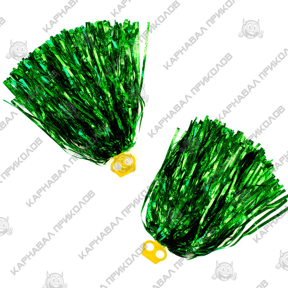 Помпоны для чирлидинга с кольцами для пальцев уп.2 шт (зеленые) – помпоны для чирлидинга и танцев Pom-Poms цвета фуксия. Декоративные пушистые шары из собранных в пучок узких полосок мишуры, изготовленных из очень тонкого и в то же время чрезвычайно прочного материала, что обуславливает крайне незначительный вес этого аксессуара и высокую износостойкость и механических повреждений. Для комфортного жонглирования, брасков и ловли помпонов, предусмотрена удобная рукоятка с двумя отсеками для пальцев, изготовлена из пластика, которая удобно фиксируется двумя пальцами в руке и не скользит. В комплекте поставляется 2 помпона. Наш магазин предлагает товары оптом и для дропшиперов, вы можете оформить заказ на сайте Карнавал Приколов и задать любые интересующие меня вопросы, заказав звонок на нашем сайте.