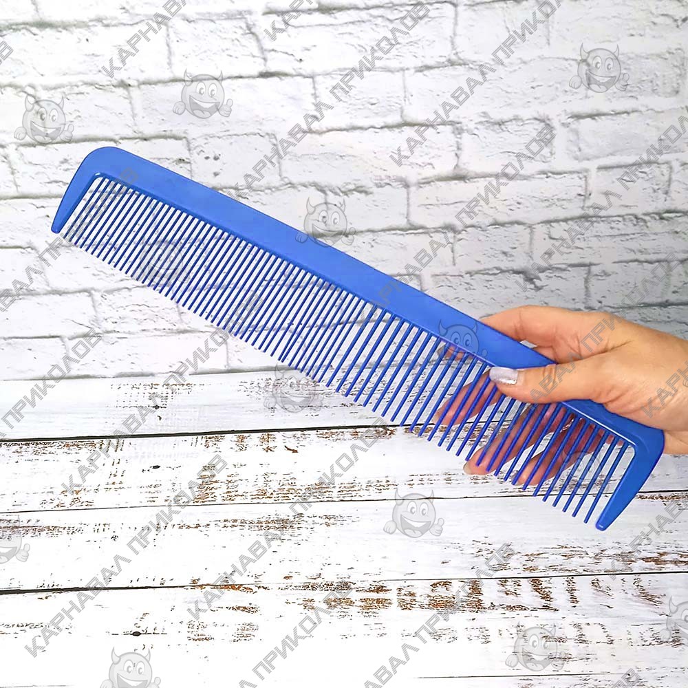 Расческа Гигант синяя - неотьемлемый атрибут для шуток и пранков. Огромная расческа длинной 38см изготовлена из прочного и яркого синего пластика. Просто лучший подарок пранк для парикмахера, девушки, лучше друга со стрижкой под ноль. Наш магазин предлагает товары оптом и для дропшипперов, вы можете оформить заказ на сайте Карнавал Приколов и задать любые интересующие вопросы менеджеру, заказав звонок на нашем сайте