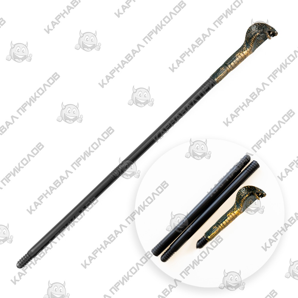 Трость складная Кобра станет шикарным дополнением образа темного мага Волан де Морта или пожирателя смерти для корпоратива или карнавальной вечеринки. Набалдашник для трости выполнен в бронзовом цвете, в виде головы кобры, а ножка из черного пластика. Яркий аксессуар имеет длину 81см. Поставляется в разобраном виде. Большой выбор карнавальных аксессуаров и деталей костюма для взрослых и детей оптом и по дропшиппингу в оптовом магазине оригинальных подарков и товаров для праздника Карнавал Приколов. Остались вопросы? Закажите звонок на сайте и наш менеджер свяжется с Вами в ближайшее время.