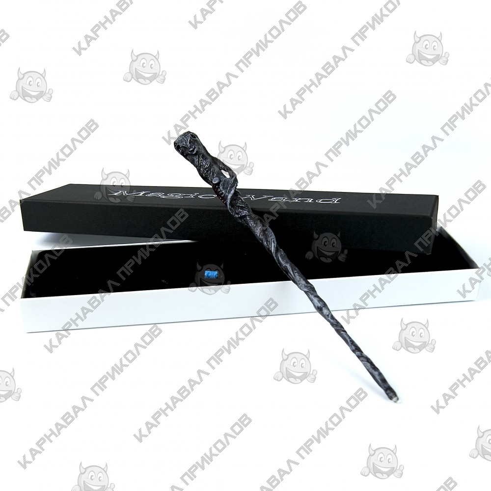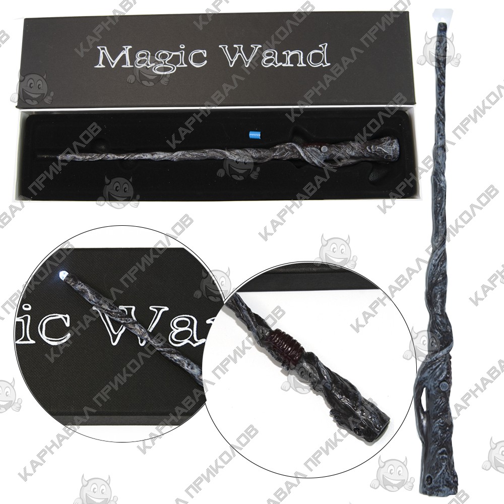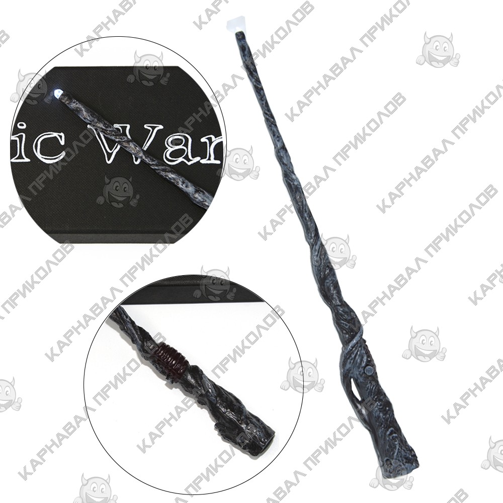 Светящаяся волшебная палочка Аластора Грюма перенесет Вас в мир волшебства и поможет почувствовать себя настоящим чистокровным волшебником и мракоборцем. Волшебная палочка Грозного глаза (на англ. Alastor Mad-Eye Moody) с фонариком станет отличным подарком для тех, кто увлекается серией фильмов/книг Джоан Роулинг о Гарри Поттере. Длина палочки 33см. Волшебная палочка поставляется в коллекционной черной матовой подарочной коробке. Снаружи на крышке коробки нанесена надпись Magic Wand (Магическая палочка). В комплект входит: палочка, комплект батареек (LR626/ AG4, 1,5V). На кончике изделия имеется LED-элемент, который включается кнопкой находящейся на рукояти изделия. В наличии также другие палочки вселенной Гарри Поттера - аналог тех, что были использованы в фильмах. Словно они только что были куплены в Лавке Олливандера. Дополнить свой образ волшебника помогут: шляпа волшебника, мантия и фирменный шарф факультета магии и чародейства Хогвартс, а также различные аксессуары из мира Гарри Поттера для взрослых и детей – винтажные ручки перо Harry Potter, разнообразные брелоки, книги-сейфы, чашки с эмблемами факультетов. Атрибутика Гарри Поттер оптом и по дропшиппингу в интернет магазине Карнавал Приколов.