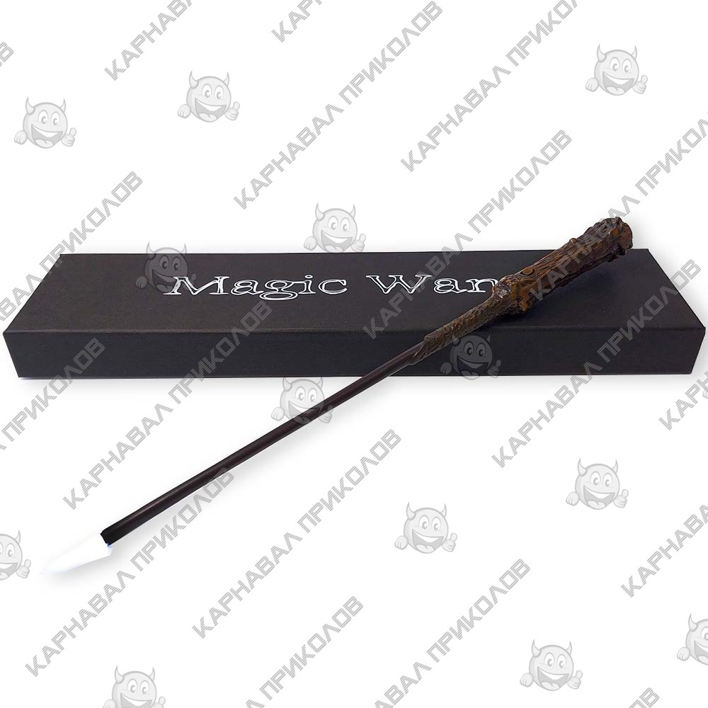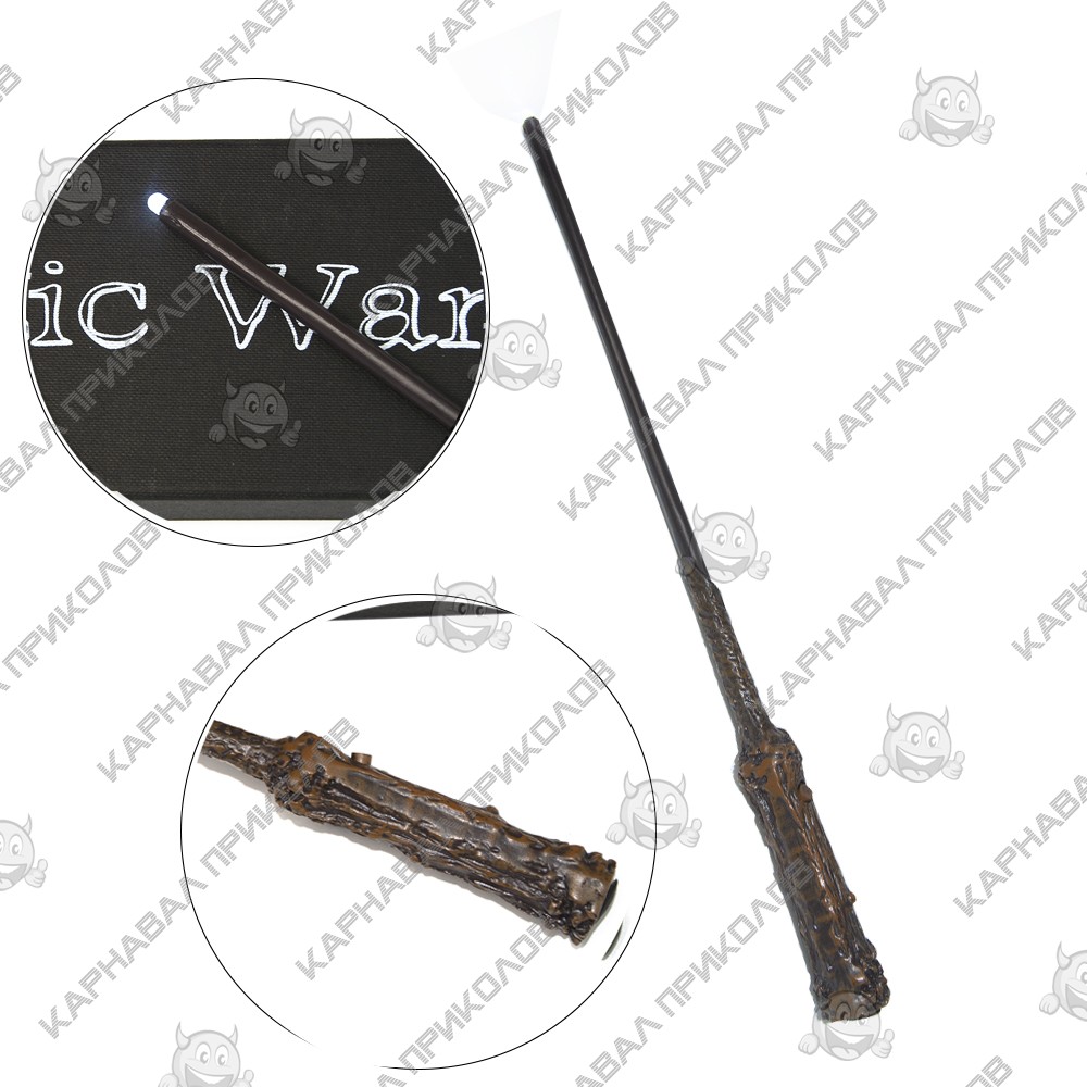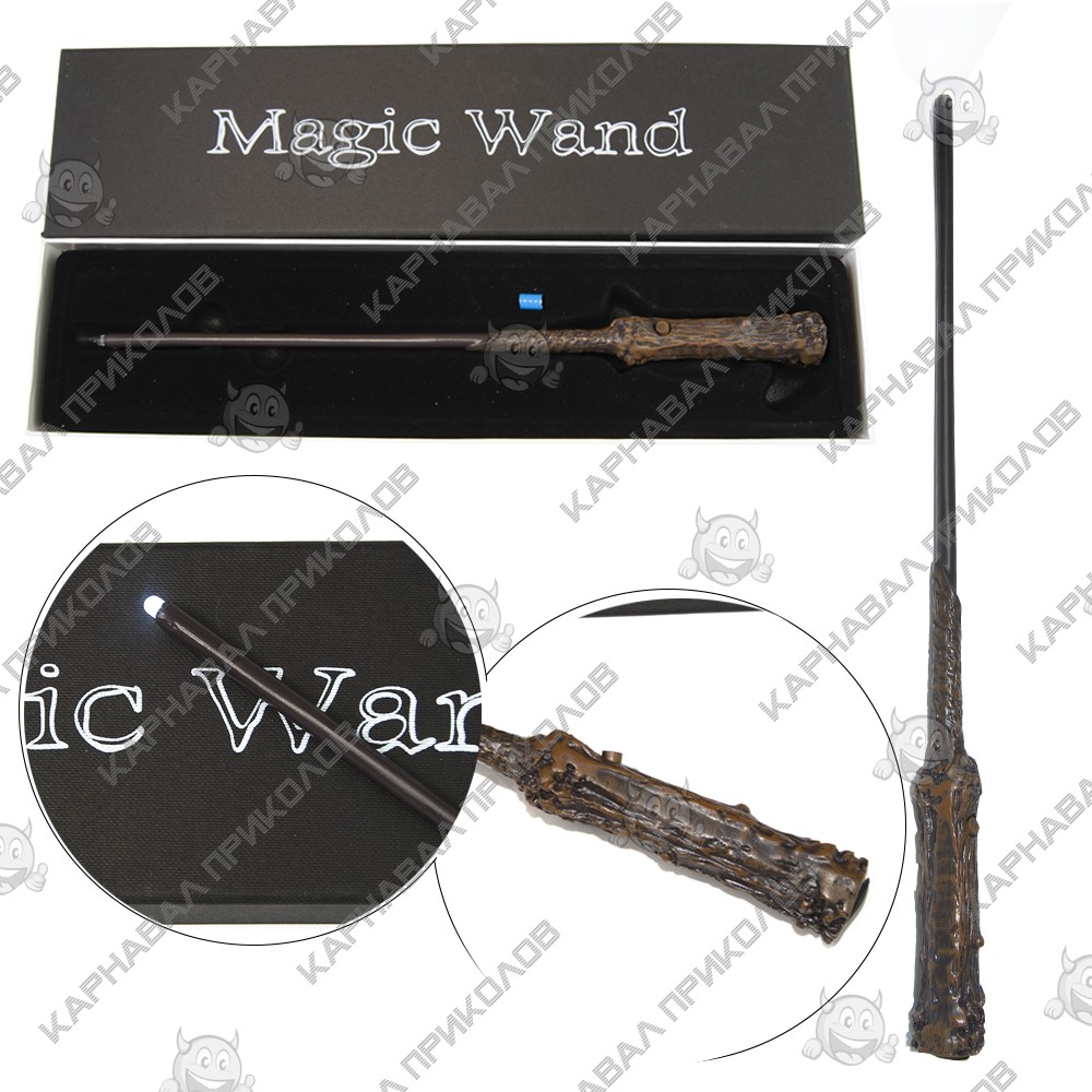 Волшебная палочка Светящаяся Гарри Поттера перенесет Вас в мир волшебства и поможет почувствовать себя настоящим волшебником школы магии и чародейства Хогвартс. Волшебная палочка Harry Potter с фонариком станет отличным подарком для тех, кто увлекается серией фильмов/книг Джоан Роулинг о Гарри Поттере. Палочка примечательна тем, что у неё была сестра-близнец (Палочка Волвн де Морта). Длина палочки 33см. Палочка выполнена в виде веточки остролиста, где рукоять покрывает кора. Волшебная палочка поставляется в коллекционной черной матовой подарочной коробке. Снаружи на крышке коробки нанесена надпись Magic Wand (Магическая палочка). В комплект входит: палочка, комплект батареек (LR626/ AG4, 1,5V). На кончике изделия имеется LED-элемент, который включается кнопкой находящейся на рукояти изделия. В наличии также другие волшебные палочки - аналог тех, что были использованы в фильмах. Словно они только что были куплены в Лавке Олливандера. Дополнить свой образ волшебника помогут: мантия и фирменный шарф факультета магии и чародейства Хогвартс, а также различные аксессуары из мира Гарри Поттера для взрослых и детей – очки Гарри, винтажные ручки перо Harry Potter, разнообразные брелоки, книги-сейфы, чашки с эмблемами факультетов. Атрибутика Гарри Поттер оптом и по дропшиппингу в интернет магазине Карнавал Приколов.