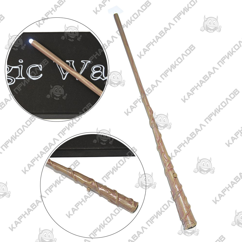 Светящаяся волшебная палочка Гермионы Грейнджер - перенесет Вас в мир волшебства и поможет перевоплотиться в настоящую волшебницу школы магии и чародейства Хогвартс. Волшебная палочка Hermione Granger с фонариком станет отличным подарком для тех, кто увлекается серией фильмов/книг Джоан Роулинг о Гарри Поттере. Длина палочки 33см. Волшебная палочка поставляется в коллекционной черной матовой подарочной коробке. Снаружи на крышке коробки нанесена надпись Magic Wand (Магическая палочка). В комплект входит: палочка, комплект батареек (LR626/ AG4, 1,5V). На кончике изделия имеется LED-элемент, который включается кнопкой находящейся на рукояти изделия. В наличии также другие волшебные палочки - аналог тех, что были использованы в фильмах. Словно они только что были куплены в Лавке Олливандера. Дополнить свой образ волшебника помогут: мантия и фирменный шарф факультета магии и чародейства Хогвартс, а также различные аксессуары из мира Гарри Поттера для взрослых и детей – очки Гарри, винтажные ручки перо Harry Potter, разнообразные брелоки, книги-сейфы, чашки с эмблемами факультетов. Атрибутика Гарри Поттер оптом и по дропшиппингу в интернет магазине Карнавал Приколов.