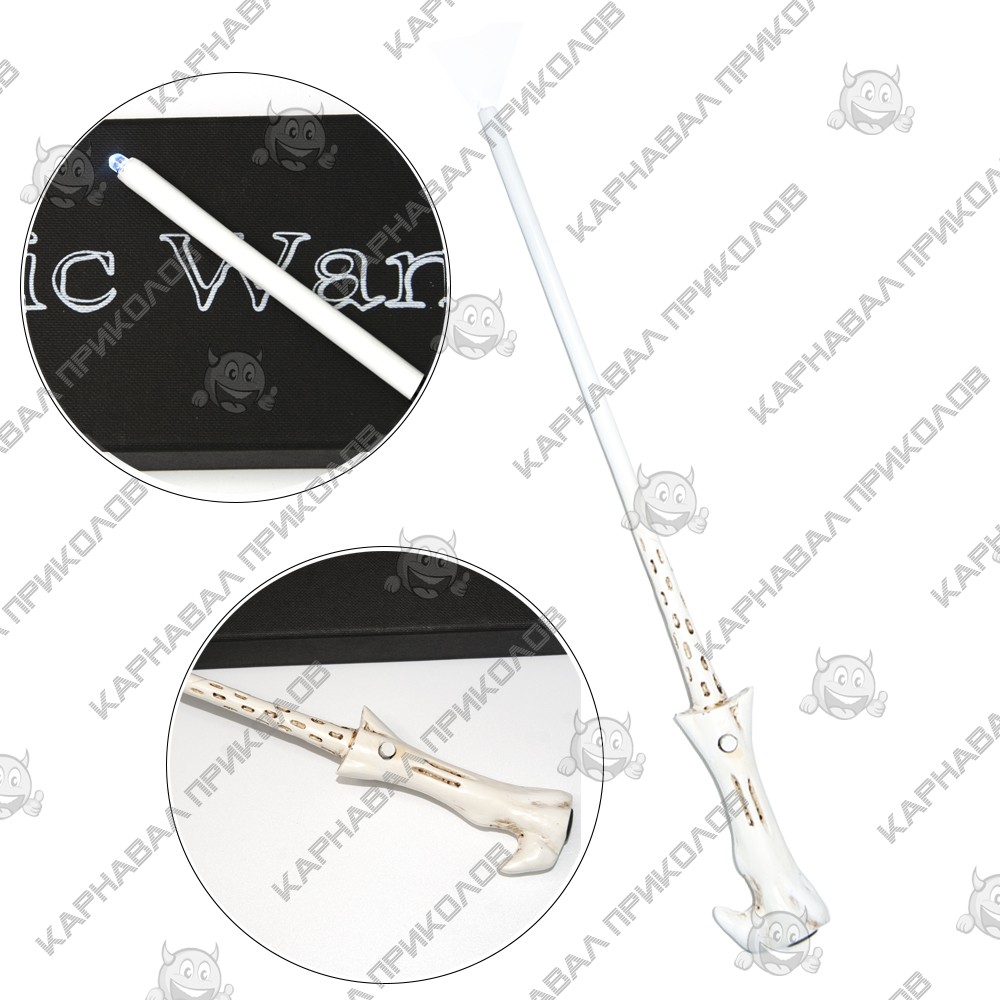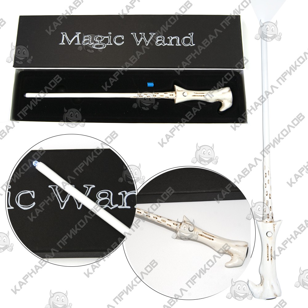 Светящаяся волшебная палочка Волан-де-Морта - перенесет Вас в мир волшебства и поможет перевоплотиться в самого могущественного темного волшебника Тома Редла - Темного Лорда Волан де Морта. Палочка примечательна тем, что у неё была сестра-близнец (Палочка Гарри Поттера). Волшебная палочка с фонариком станет отличным подарком для тех, кто увлекается серией фильмов/книг Джоан Роулинг о Гарри Поттере. Длина палочки 35см. Волшебная палочка поставляется в коллекционной черной матовой подарочной коробке. Снаружи на крышке коробки нанесена надпись Magic Wand (Магическая палочка). В комплект входит: палочка, комплект батареек (LR626/ AG4, 1,5V). На кончике изделия имеется LED-элемент, который включается кнопкой находящейся на рукояти изделия. В наличии также другие палочки вселенной Гарри Поттера - аналог тех, что были использованы в фильмах. Словно они только что были куплены в Лавке Олливандера. Дополнить свой образ волшебника помогут: шляпа волшебника, мантия и фирменный шарф факультета магии и чародейства Хогвартс, а также различные аксессуары из мира Гарри Поттера для взрослых и детей – винтажные ручки перо Harry Potter, разнообразные брелоки, книги-сейфы, чашки с эмблемами факультетов. Атрибутика Гарри Поттер оптом и по дропшиппингу в интернет магазине Карнавал Приколов.
