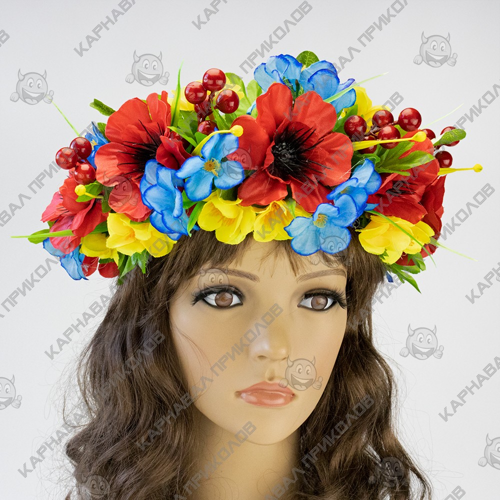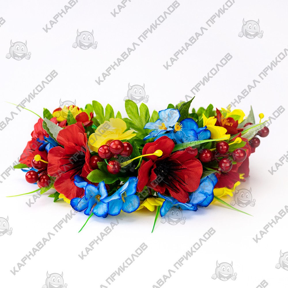 Украинский веночек объемный на голову Василина 12888 - выполнен из искусственных цветов фиалки, лючика и мака, декоративных ягод калины, исскуственных листьев, травинок. Украинский венок из цветов и станет прекрасным дополнением украинского образа для фотосессии. Несмотря на объемность, этнический веночек очень лёгкий. Изготовлен на прочной основе (каркасе из проволоки), поэтому хорошо держит форму, размер регулируется при помощи лент сзади. Крепление - лента (под волосами). Изготовление Украинский веночек Купальский Василина 12888 производится нашими мастерами под заказ в срок от 1-го до 3-х рабочих дней.Мы предлагаем Вам купить украшение для волос из авторской серии Handmade венков в украинском национальном стиле в интернет - магазине Карнавал Приколов и погрузиться в атмосферу этнического праздника. Будьте в тренде - дополните свой образ хорошим аксессуаром, который Вы можете подобрать на нашем сайте. Пышный украинский венок прекрасно подойдет для патриотических фотосессий, дефиле, сценических выступлений, народных этно фестивалей и ярмарок, съемок фильма или клипа, концертов и флешмобов, Украинских свадеб и семейных торжеств, школьных и детских праздников. Компания Карнавал Приколов оставляет за собой право вносить изменения в технические характеристики, цвет, комплектацию и конструкцию, не ухудшающие эксплуатационные характеристики изделий, без предварительного уведомления. Изображения и цвет представленного товара могут незначительно отличаться от оригинала продукции, в зависимости от разрешения и настроек вашего монитора, а также условий освещения при съемке. В Карнавал Приколов представлен большой выбор оригинальных головных уборов для любых мероприятий. Предлагаем купить Украинский веночек Купальский Василина 12888 и создать яркий образ в этническом стиле. Подберите свой идеальный аксессуар прямо сейчас на нашем сайте!