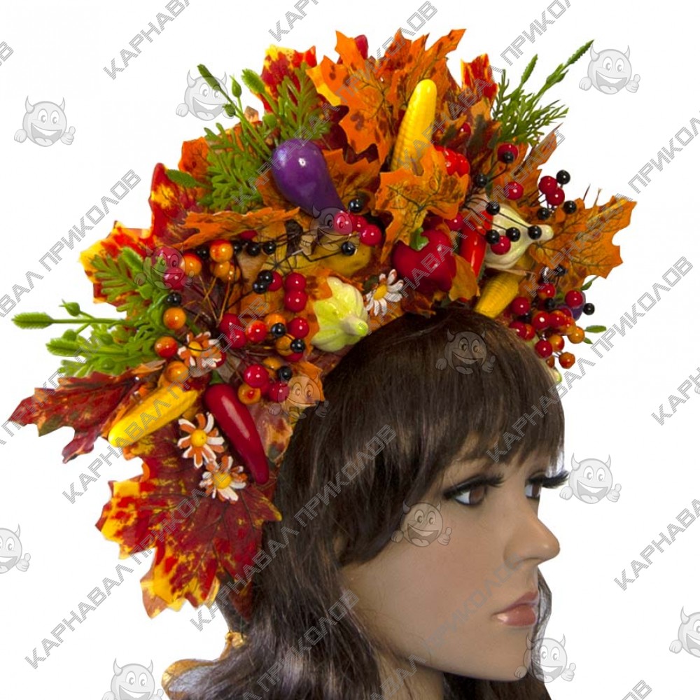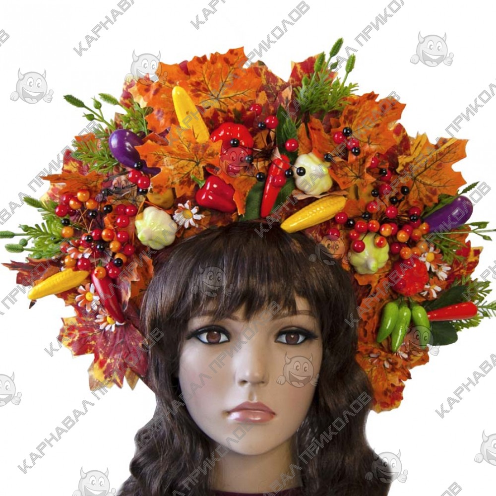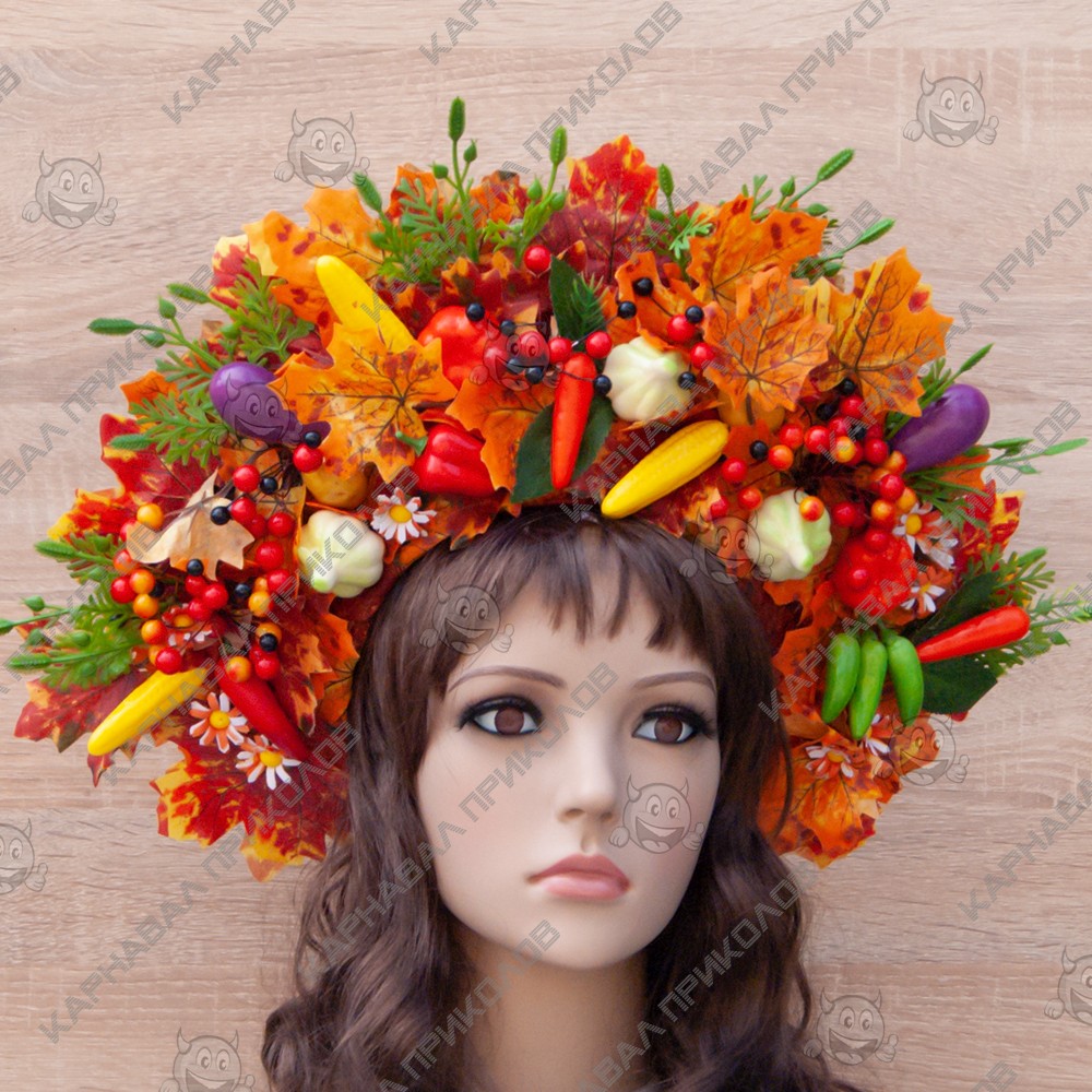 Украинский осенний венок высокий на голову Дары Осени 11693 - выполнен из искусственных листьев, натуральных шишек, ягод калины и тычинок, дополнен декоративными веточками. Несмотря на объемность, этнический осенний венок очень лёгкий. Изготовлен на прочной основе (каркасе из проволоки), поэтому хорошо держит форму, размер регулируется при помощи атласной ленты сзади. Высота венка по центровой части прибл. 15 см. Фиксация – атласная лента, которая изысканно свисает по волосам, добавляя особого шарма. С цветочным украшением на голову Украинский венок в стиле Оли Поляковой легко можно создать оригинальный образ на праздник. Изготовление Украинского осеннего венка высоого на голову Дары Осени 11693 производится нашими мастерами под заказ в срок от 1-го до 3-х рабочих дней. Пышный украинский венок прекрасно подойдет для фотосессии, дефиле, любого выступления на сцене, этно фестиваля, съемок фильма или клипа. Мы предлагаем Вам купить украшение для волос из авторской серии корон ручной работы в национальном стиле в интернет - магазине Карнавал Приколов и погрузиться в атмосферу этнического праздника. Будьте в тренде - дополните свой образ хорошим аксессуаром, который Вы можете подобрать на нашем сайте! Компания Карнавал Приколов оставляет за собой право вносить изменения в технические характеристики, цвет, комплектацию и конструкцию, не ухудшающие эксплуатационные характеристики изделий, без предварительного уведомления. Изображения и цвет представленного товара могут незначительно отличаться от оригинала продукции, в зависимости от разрешения и настроек вашего монитора, а также условий освещения при съемке. Идеальное Украшение на голову на ПРАЗДНИК ОСЕНИ, ПРАЗДНИК УРОЖАЯ.