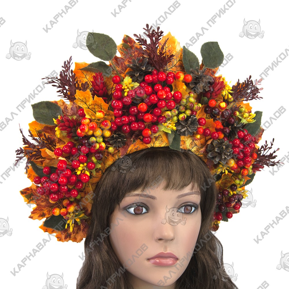 Украинский осенний венок высокий на голову Дарина 11235 выполнен из искусственных листьев, натуральных шишек, ягод калины и тычинок, дополнен декоративнымифиолетовыми веточками. Несмотря на объемность, этнический осенний венок очень лёгкий. Изготовлен на прочной основе (каркасе из проволоки), поэтому хорошо держит форму, размер регулируется при помощи атласной ленты сзади. Высота венка по центровой части прибл. 15 см. Фиксация – атласная лента, которая изысканно свисает по волосам, добавляя особого шарма. С цветочным украшением на голову Украинский венок в стиле Оли Поляковой легко можно создать оригинальный образ на праздник. Изготовление Украинского осеннего венка высокого на голову Дарина 11235 производится нашими мастерами под заказ в срок от 1-го до 3-х рабочих дней. Пышный украинский венок прекрасно подойдет для фотосессии, дефиле, любого выступления на сцене, этно фестиваля, съемок фильма или клипа. Мы предлагаем Вам купить украшение для волос из авторской серии корон ручной работы в национальном стиле в интернет - магазине Карнавал Приколов и погрузиться в атмосферу этнического праздника. Будьте в тренде - дополните свой образ хорошим аксессуаром, который Вы можете подобрать на нашем сайте! Компания Карнавал Приколов оставляет за собой право вносить изменения в технические характеристики, цвет, комплектацию и конструкцию, не ухудшающие эксплуатационные характеристики изделий, без предварительного уведомления. Изображения и цвет представленного товара могут незначительно отличаться от оригинала продукции, в зависимости от разрешения и настроек вашего монитора, а также условий освещения при съемке.