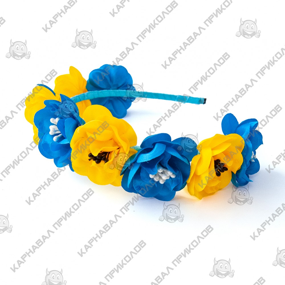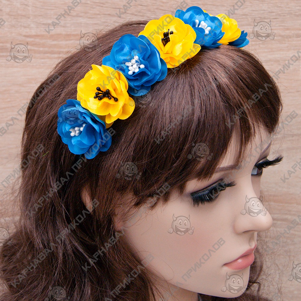 Украинский веночек цветочный на ободке 12200 с тычинками (синий с желтым) потрясающий по красоте национальный веночек! Украинский венок прекрасно подойдет для патриотических фотосессий, дефиле, сценических выступлений, народных этно фестивалей и ярмарок, съемок фильма или клипа, концертов и флешмобов, Украинских свадеб и семейных торжеств, школьных и детских праздников. Изображения и цвет представленного товара могут незначительно отличаться от оригинала продукции, в зависимости от разрешения и настроек вашего монитора, а также условий освещения при съемке. Откройте для себя богатый выбор необычных головных уборов для любого события в нашем ассортименте! Будьте в тренде - дополните свой образ хорошим аксессуаром, который Вы можете подобрать на нашем сайте! С таким венком Вы будет просто не отразимы!