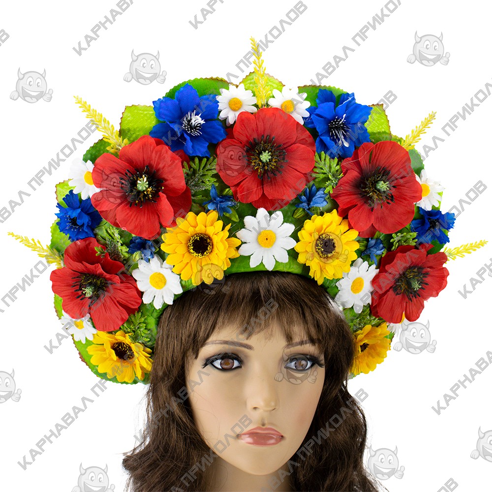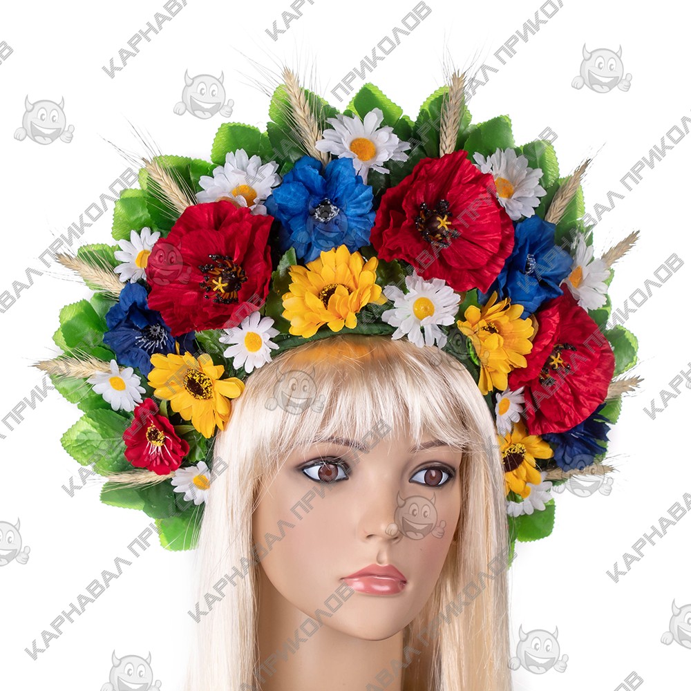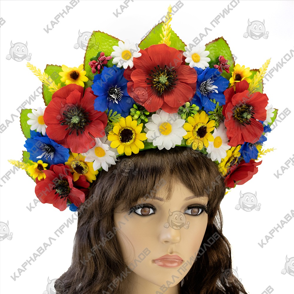 Украинский венок высокий на голову Марьяна (р. 56-60) 9344 выполнен из искусственных дубовых листьев, искусственных больших красных пионов и синих васильков, ромашек и колосков. Украинский венок из цветов и станет прекрасным дополнением украинского образа для фотосессии. Несмотря на объемность, этнический веночек очень лёгкий. Изготовлен на прочной основе (каркасе из проволоки), поэтому хорошо держит форму, размер регулируется при помощи ленты сзади. Высота венка по центровой части прибл. 15см. Крепление - лента (под волосами). Изготовление Украинского венка высогокго на голову Марьяна (р. 56-60) 9344 производится нашими мастерами под заказ в срок от 1-го до 3-х рабочих дней. Пышный украинский венок прекрасно подойдет для фотосессии, дефиле, любого выступления на сцене, этно фестиваля, съемок фильма или клипа Мы предлагаем Вам купить украшение для волос из авторской серии Handmade венков в украинском национальном стиле в интернет - магазине Карнавал Приколов и погрузиться в атмосферу этнического праздника. Будьте в тренде - дополните свой образ хорошим аксессуаром, который Вы можете подобрать на нашем сайте! Компания Карнавал Приколов оставляет за собой право вносить изменения в технические характеристики, цвет, комплектацию и конструкцию, не ухудшающие эксплуатационные характеристики изделий, без предварительного уведомления. Изображения и цвет представленного товара могут незначительно отличаться от оригинала продукции, в зависимости от разрешения и настроек вашего монитора, а также условий освещения при съемке.