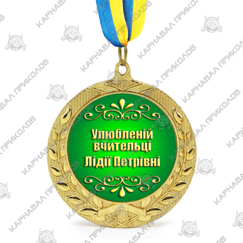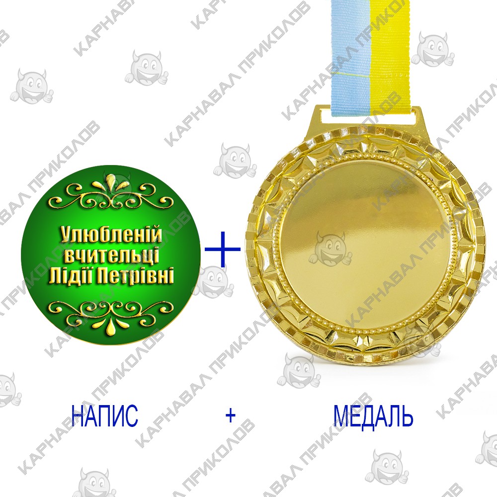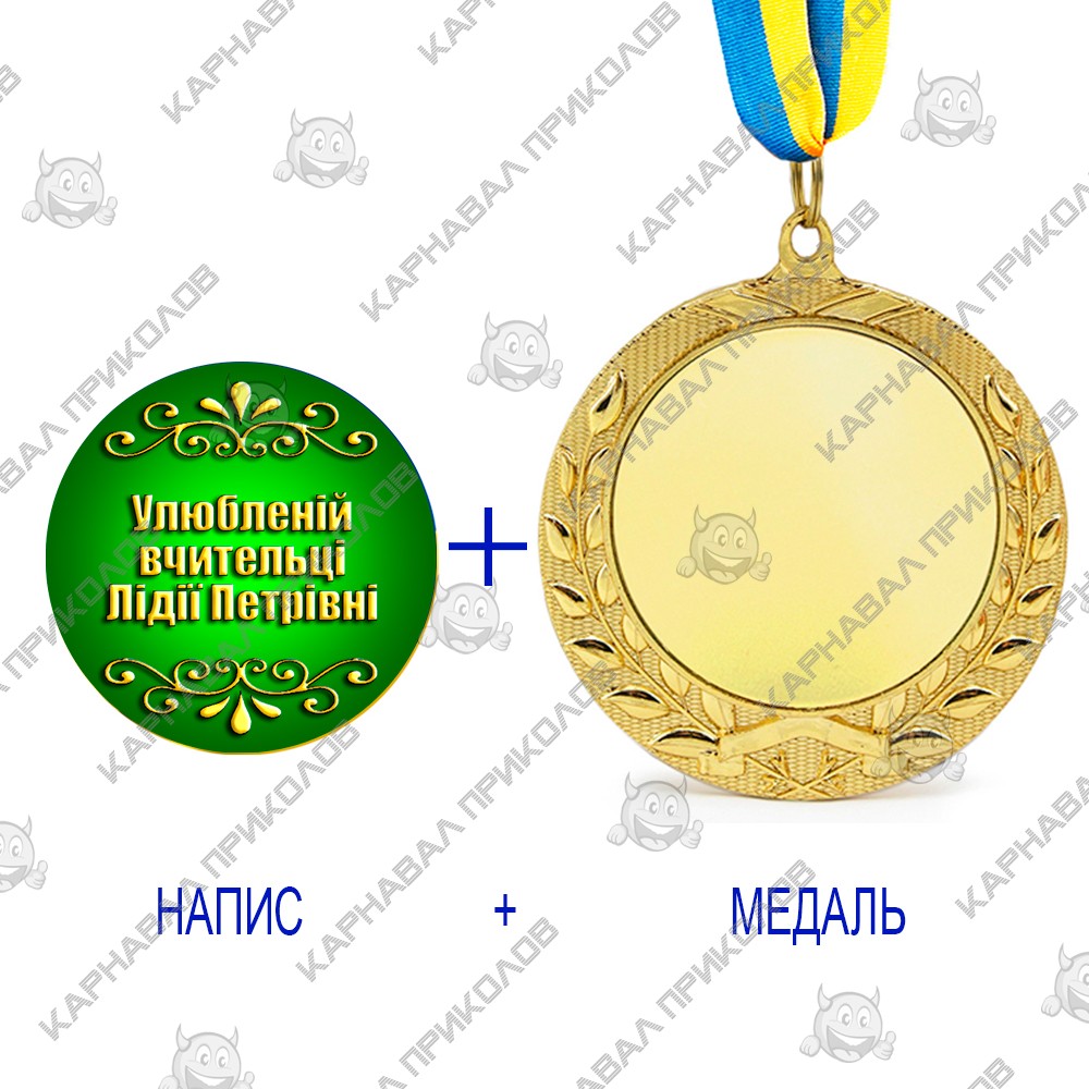 Индивидуальная печать №11 надписи на Медали подарочной зеленая (max 50 символов) - это комплект из жетона с индивидуальной надписью и медали. Интернет-магазин Карнавал Приколов представляет вашему вниманию услугу печати индивидуальной надписи на медали подарочной с диаметром жетона 50мм. Цвет фона: зеленый. Цвет текста индивидуальной надписи на Медали подарочной: имитация золота. Мы изготавливаем индивидуальную печать надписи для Медали подарочной шрифтом Impact. Максимальное количество символов на данном жетоне: 50 символов (с учетом пробелов и знаков пунктуации), максимальное количество строк для размещения - 5. Печать текста производится на фотобумаге и затем ламинируется. Макет для печати изготавливается согласно представленному шаблону. Текст произвольный, но не более максимального количества символов. Гравировальных работ мы не производим. Медаль подарочная золотого цвета в обрамлении лавровых листьев, на которой разместится ваша надпись с поздравлением - произведет неизгладимое впечатление! Отгрузка товаров с индивидуальной надписью производится на следующий рабочий день после подтверждения макета и оформления заказа. У нас широкий ассортимент кубков для спортивных и танцевальных соревнований, выпускных вечеров, проведения церемоний награждения и корпоративных подарков и сувениров. И это далеко не все, что мы можем для Вас изготовить. Остались вопросы? Задайте их менеджеру, заказав звонок на сайте.