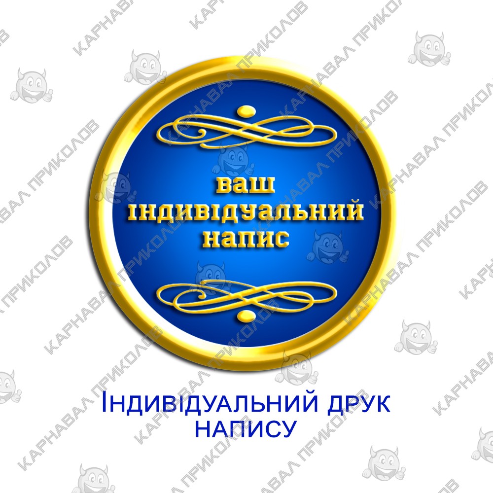 Интернет-магазин Карнавал Приколов представляет вашему вниманию услугу печати индивидуальной надписи на медалях подарочных с диаметром жетона 50мм. Цвет фона: синий. Цвет текста индивидуальной надписи на Медали подарочной: имитация золота. Мы изготавливаем индивидуальную печать надписи для Медали подарочной шрифтом Sports World. Максимальное количество символов на данном жетоне: 35 символов (с учетом пробелов и знаков пунктуации), максимальное количество строк для размещения - 4. Печать текста производится на фотобумаге и затем ламинируется. Макет для печати изготавливается согласно представленному шаблону. Текст произвольный, но не более максимального количества символов. Гравировальных работ мы не производим. Медаль в комплекте не поставляется, но ее можно заказать отдельно. Отгрузка товаров с индивидуальной надписью производится на следующий рабочий день после подтверждения макета и оформления заказа. У нас широкий ассортимент кубков для спортивных и танцевальных соревнований, выпускных вечеров, проведения церемоний награждения и корпоративных подарков и сувениров. И это далеко не все, что мы можем для Вас изготовить. Остались вопросы? Задайте их менеджеру, заказав звонок на сайте.