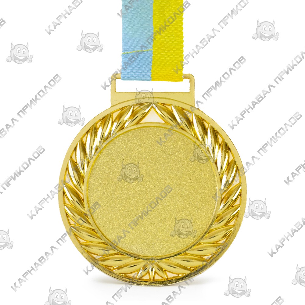 Медаль подарочная в золотом обрамлении лавровых листьев - произведет впечатление и несомненно станет отличным подарком на память! Медаль выполнена из сплавов различных металлов с покрытием благородного золотистого цвета нанесенного булатным способом, диаметром 7 см, размером жетона 4,7см и желто-голубой репсовой лентой длиною 40см. Медаль не подходит для выполнения на ней гравировки. Наш магазин предлагает товары оптом и для дропшипперов, вы можете оформить заказ на сайте Карнавал Приколов и задать любые интересующие вопросы менеджеру, заказав звонок на нашем сайте.