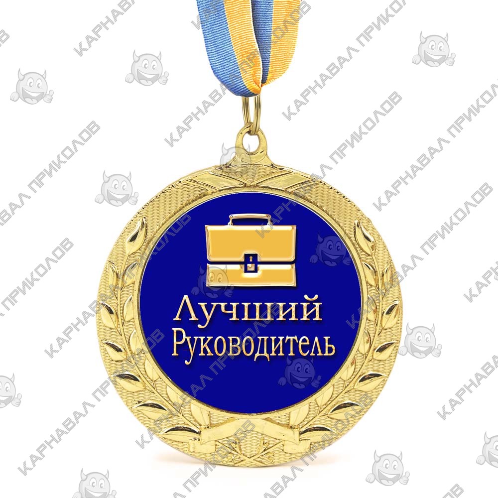 Поскольку давно известно, что лучший подарок от сотрудников это признание заслуг, предлагаем вам презентовать руководителям медаль Лучший руководитель. Оригинальные подарки и сувениры, которые продемонстрируют, насколько вы цените ваше руководство, всегда уместны. Медаль подарочная в золотом обрамлении лавровых листьев - произведет впечатление и несомненно станет отличным подарком на память! Медаль выполнена из сплавов различных металлов с покрытием благородного золотистого цвета нанесенного булатным способом, диаметром 7 см, размером жетона 5см и желто-голубой репсовой лентой длиною 40см. Медаль не подходит для выполнения на ней гравировки. Наш магазин предлагает товары оптом и для дропшипперов, вы можете оформить заказ на сайте Карнавал Приколов и задать любые интересующие вопросы менеджеру, заказав звонок на нашем сайте.