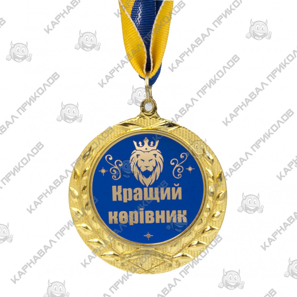 Поскольку давно известно, что лучший подарок от сотрудников это признание заслуг, предлагаем вам презентовать руководителям медаль Кращий керівник. Оригинальные подарки и сувениры, которые продемонстрируют, насколько вы цените ваше руководство, всегда уместны. Медаль подарочная Кращий керівник в золотом обрамлении лавровых листьев - произведет впечатление и несомненно станет отличным подарком на память! Медаль выполнена из сплавов различных металлов с покрытием благородного золотистого цвета нанесенного булатным способом, диаметром 7 см, размером жетона 5см и желто-голубой репсовой лентой длиною 40см. Медаль не подходит для выполнения на ней гравировки. Наш магазин предлагает товары оптом и для дропшипперов, вы можете оформить заказ на сайте Карнавал Приколов и задать любые интересующие вопросы менеджеру, заказав звонок на нашем сайте.