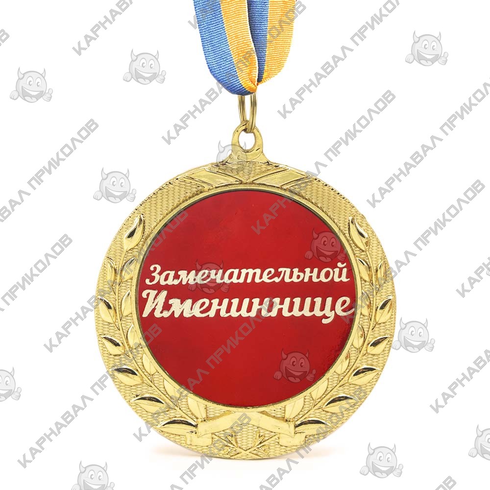 Что подарить подруге? Как выбрать подарок маме? Именины - важный праздник для нас, поэтому, необходимо подобрать подарки, которые поднимут настроение. На нашем сайте вы сможете найти оригинальные подарки, необычные и яркие, такие, как именинная медаль. Великолепная медаль яркого красного цвета с золотыми лавровыми листьями, на самой медали - изящная золотая надпись Замечательной имениннице. Награда сочетает золотой и малахитовый цвета, в центре выбита золотом надпись Замечательной имениннице, медаль крепится на длинной желто - красной ленте. К награде также прилагается эффектный картонный футляр красного цвета с золотым узором. Вы все еще не выбрали подарок сестре? У начальницы день рождения, а вы не решили, что подарить? Медаль подарочная в золотом обрамлении лавровых листьев - произведет впечатление и несомненно станет отличным подарком на память! Медаль выполнена из сплавов различных металлов с покрытием благородного золотистого цвета нанесенного булатным способом, диаметром 7 см, размером жетона 5см и желто-голубой репсовой лентой длиною 40см. Медаль не подходит для выполнения на ней гравировки. Наш магазин предлагает товары оптом и для дропшипперов, вы можете оформить заказ на сайте Карнавал Приколов и задать любые интересующие вопросы менеджеру, заказав звонок на нашем сайте. Выбирайте медаль Замечательной имениннице на нашем сайте. На нашем сайте можно также заказать медаль Славному имениннику.