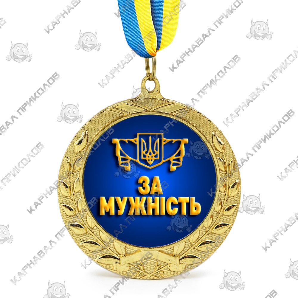 Медаль подарочная За мужнiсть - отличная и оригинальная награда за мужество. Подарок символичен и необычен, говорящий как дорог для Вас поздравляемый человек! Медаль подарочная За мужнiсть в золотом обрамлении лавровых листьев - произведет впечатление и несомненно станет отличным подарком на память! Медаль выполнена из сплавов различных металлов с покрытием благородного золотистого цвета нанесенного булатным способом, диаметром 7 см, размером жетона 5см и желто-голубой репсовой лентой длиною 40см. Медаль не подходит для выполнения на ней гравировки. Надпись нанесена на украинском языке. Среди нашего широкого ассортимента товаров, Вы найдете множество необычных и оригинальных подарков для различных мероприятий. Наш магазин предлагает товары оптом и для дропшипперов, вы можете оформить заказ на сайте Карнавал Приколов и задать любые интересующие вопросы менеджеру, заказав звонок на нашем сайте.
