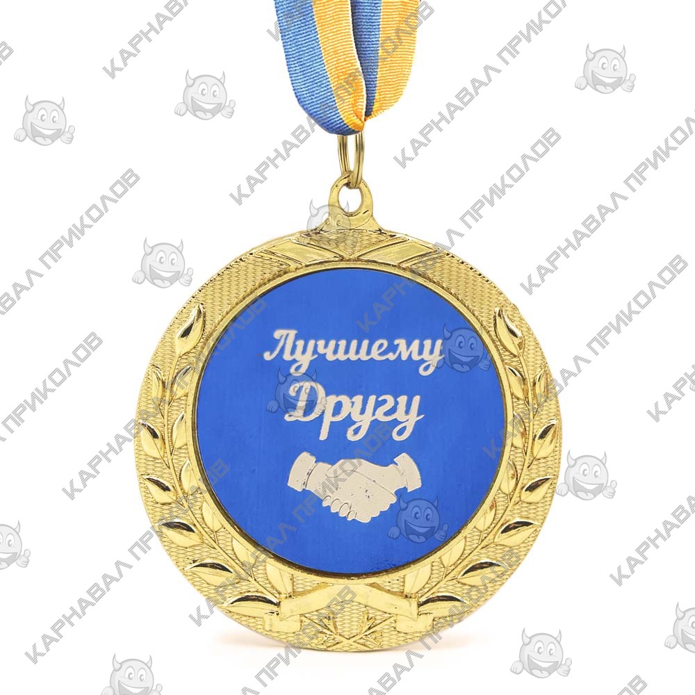 Прекрасная медаль для прекрасного человека. Подобные забавные награды – замечательный подарок. Презентуйте другу красивую медаль синего цвета, на которой золотом запечатлено крепкое мужское рукопожатие и красивым почерком написано Лучшем другу. Необязательно ждать праздника или памятной даты. Такие приколы приятно получать просто так, без повода, они показывают, как высоко вы цените друзей и их поддержку. Хотите сделать приятное другу и раздумываете, что подарить? Выбирайте дружескую медаль на нашем сайте. Лучший подарок для лучшего друга. Медаль подарочная в золотом обрамлении лавровых листьев - произведет впечатление и несомненно станет отличным подарком на память! Медаль выполнена из сплавов различных металлов с покрытием благородного золотистого цвета нанесенного булатным способом, диаметром 7 см, размером жетона 5см и желто-голубой репсовой лентой длиною 40см. Медаль не подходит для выполнения на ней гравировки. Наш магазин предлагает товары оптом и для дропшипперов, вы можете оформить заказ на сайте Карнавал Приколов и задать любые интересующие вопросы менеджеру, заказав звонок на нашем сайте.