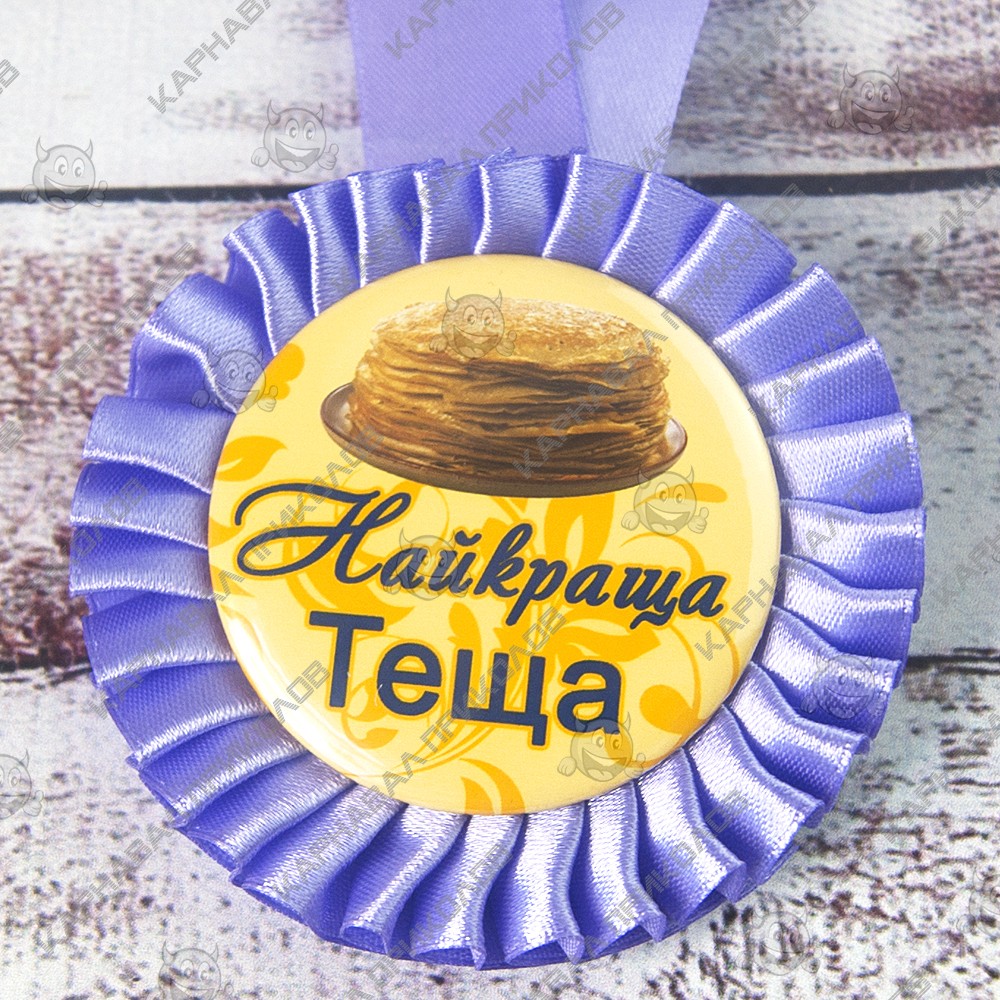 Медаль прикольная 47482 Найкраща Теща - вне зависимости от возраста, прикольные подарки любимой теще на день рождения от зятя – это всегда трогательно и приятно. Медаль выполнена из пластика, декорирована атласной лентой, диаметром розетки 8,5 см и диаметром жетона 5,8см, атласной лентой длинною 35см. Медаль изготавливается под заказ. Обмену и возврату не подлежит. Это станет замечательным и оригинальным подарком! Среди нашего широкого ассортимента товаров, Вы найдете множество необычных и оригинальных подарков для различных мероприятий. Наш магазин предлагает товары оптом и для дропшипперов, вы можете оформить заказ на сайте Карнавал Приколов и задать любые интересующие вопросы менеджеру, заказав звонок на нашем сайте.