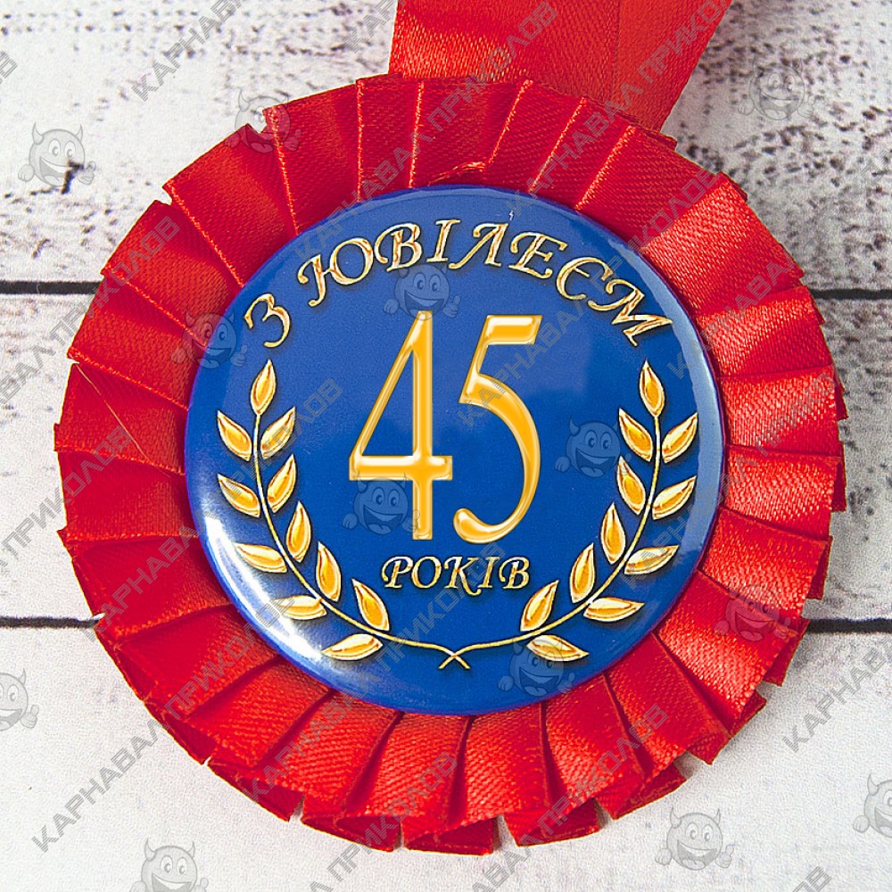 Какой выбрать подарок на юбилей? Чем порадовать изменника в эти торжественные для него минуты? Как часто мы не можем решить: что подарить отцу? Каким должен быть подарок начальнику? Что вручить на юбилей другу? Ответ прост – юбиляру нужна медаль. Подарите ему Медаль Прикольная З Ювілеєм 45, которая покажет на сколько он вам дорог. Для хорошего настроения в этот день нужны оригинальные подарки и сувениры, глядя на которые, юбиляр впоследствии улыбнется. Великолепная медаль яркого цвета, на самой медали изящная надпись на украинском языке З Ювілеєм 45 Медаль выполнена из пластика, декорирована атласной лентой, диаметром розетки 8,5 см и диаметром жетона 5,8см, атласной лентой длинною 35см. Медаль изготавливается под заказ. Обмену и возврату не подлежит. Среди нашего широкого ассортимента товаров, Вы найдете множество необычных и оригинальных подарков для различных мероприятий. Наш магазин предлагает товары оптом и для дропшипперов, вы можете оформить заказ на сайте Карнавал Приколов и задать любые интересующие вопросы менеджеру, заказав звонок на нашем сайте.