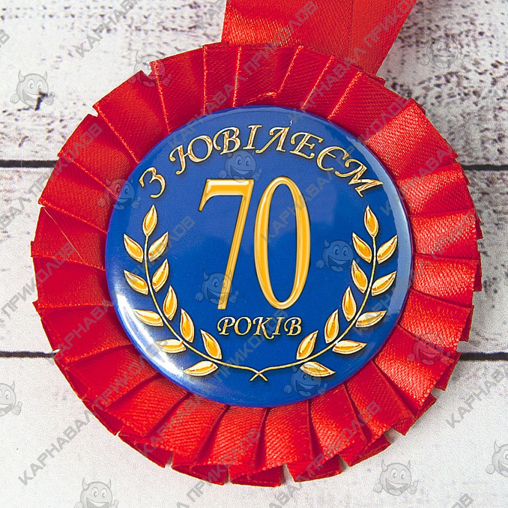 Медаль юбилейная 47558 З Ювілеєм 70 —знак большого жизненного пути! 70 лет — это не просто дата. Это настоящий рубеж, который символизирует силу, мудрость, опыт и тысячи побед на жизненном пути. Это праздник, который нужно отметить достойно — с гордостью, душой и тёплыми словами. И что может быть ярче и символичнее, чем вручение юбилейной медали З Ювілеєм 70 ? Эта медаль — больше, чем просто сувенир. Это знак глубокого уважения, благодарности и любви. Праздничный дизайн и торжественная надпись делают её особенным подарком, который обязательно тронет до слёз. Идеально подойдёт как для женщины, так и для мужчины. Хотите порадовать маму, папу, коллегу, начальника, друга или близкого человека? Этой медалью вы скажете гораздо больше, чем словами. Почему стоит выбрать именно эту медаль: Торжественный и яркий дизайн, Универсальный подарок для мужчины или женщины, Подходит для семейного торжества, корпоративного праздника, юбилейного вечера. Медаль выполнена из пластика, декорирована атласной лентой, диаметром розетки 8,5 см и диаметром жетона 5,8см, атласной лентой длинною 35см. Медаль изготавливается под заказ. Обмену и возврату не подлежит. Среди нашего широкого ассортимента товаров, Вы найдете множество необычных и оригинальных подарков для различных мероприятий. Наш магазин предлагает товары оптом и для дропшипперов, вы можете оформить заказ на сайте Карнавал Приколов и задать любые интересующие вопросы менеджеру, заказав звонок на нашем сайте.