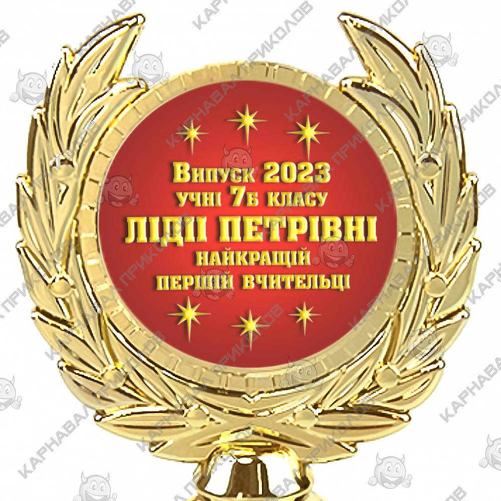 Интернет-магазин Карнавал Приколов представляет вашему вниманию услугу печати индивидуальной надписи на статуэтках с диаметром жетона 50мм. Цвет фона: красный. Цвет текста индивидуальной надписи на статуэтках: имитация золота. Мы изготавливаем индивидуальную печать надписи для статуэток шрифтом AGAalenBold. Максимальное количество символов на данном жетоне: 70 символов (с учетом пробелов и знаков пунктуации), максимальное количество строк для размещения - 5. Печать текста производится на фотобумаге и затем ламинируется. Макет для печати изготавливается согласно представленному шаблону. Текст произвольный, но не более максимального количества символов. Гравировальных работ мы не проводим. Отгрузка товаров с индивидуальной надписью производится на следующий рабочий день после подтверждения макета и оформления заказа. У нас широкий ассортимент кубков для спортивных и танцевальных соревнований, выпускных вечеров, проведения церемоний награждения и корпоративных подарков и сувениров. И это далеко не все, что мы можем для Вас изготовить. Остались вопросы? Задайте их менеджеру, заказав звонок на сайте.