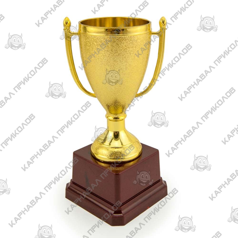 Красивый, грациозный, кубок на темно-коричневой подставке понравится всем, кому его вручат. Вам нужно отметить работу коллеги, или искренне поздравить лучшего друга? Не тратьте время на раздумывания, ведь интернет-магазин Карнавал Приколов может предложить шикарную вещь – Кубок Поздравительный. Желаете подарить эмоции радости и удивления? Кубок Поздравительный, как нельзя лучше, вам в этом поможет. Купить светлые улыбки нельзя, но их можно засветить с помощью оригинальных подарков, изобилием которых вас удивит наш интернет-магазин Карнавал Приколов. На бордовом пьедестале статуэтки может присутствовать имитация мраморных разводов. Если повод для поздравлений у вас уже появился – вперед за прикольными наградами.