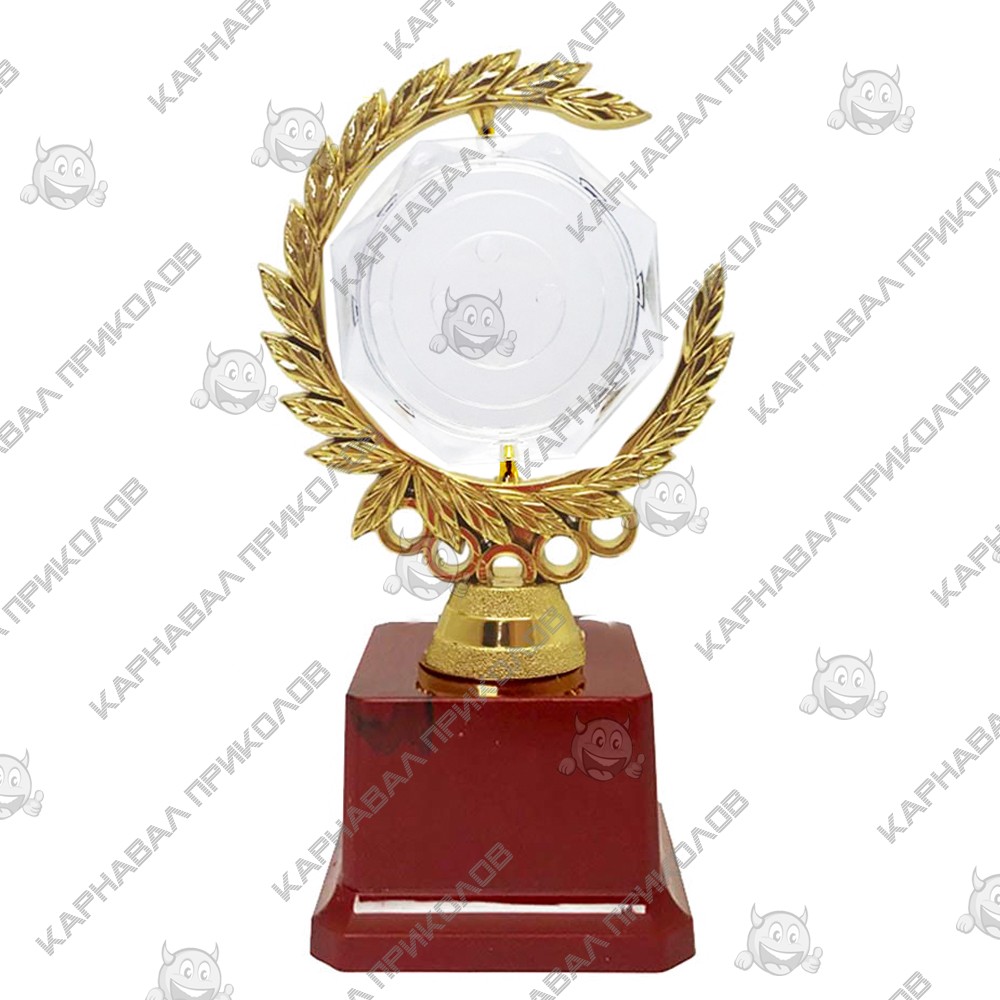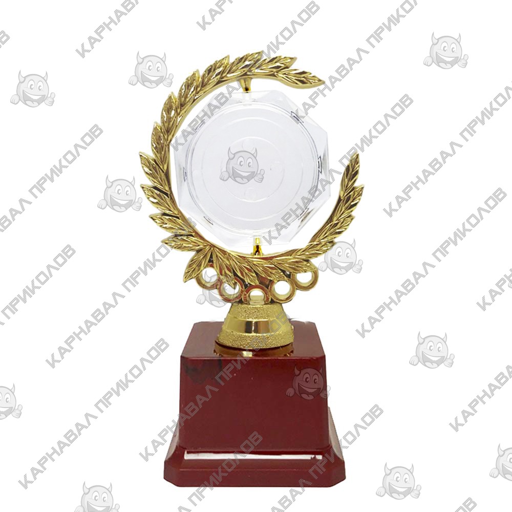 Статуэтка 57001 Венок с кристаллом превосходный и оригинальный подарок. Подарочная статуэтка выполнена в виде венка из лавровых листьев из пластика с покрытием под золото, внутри которого расположен прозрачный кристалл на устойчивой подставке. Кристалл крутиться вокруг своей оси на 365 градусов. Такой сувенир станет отличным украшением интерьера и запоминающимся подарком.