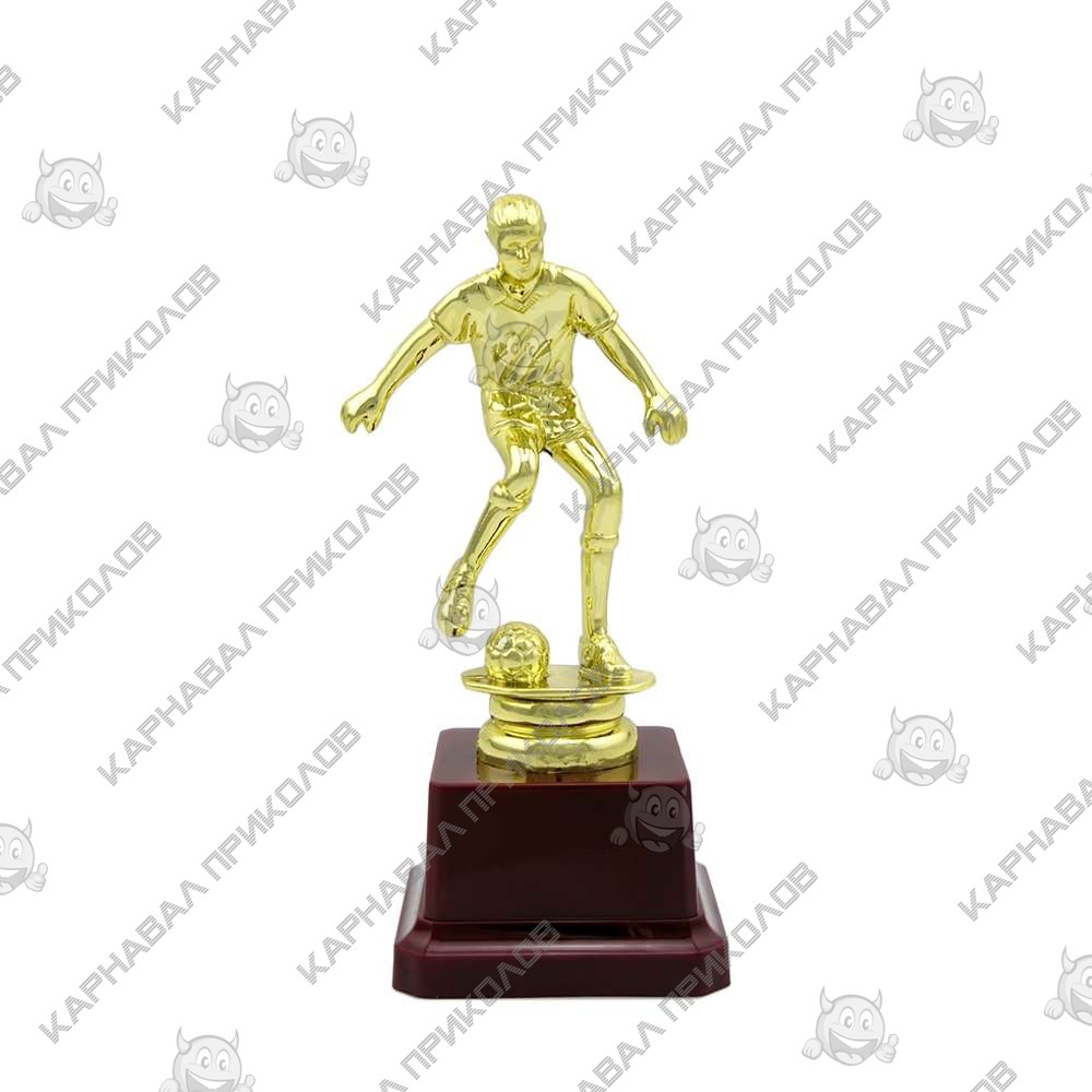 Статуэтка 57057 Футболист превосходный и оригинальный подарок. Подарочная статуэтка выполнена в виде бегущего футболиста с мячом, из пластика с покрытием под золото на устойчивой подставке, такой сувенир станет отличным украшением интерьера и запоминающимся подарком.. Цвета фона: синий, красный, зеленый. Также изготавливаем индивидуальную печать надписи на табличке для пьедестала Кубков и Статуэток размерами: 4. 2х2. 5см (цвет текста - черный, фон - золотой). На бордовом пьедестале статуэтки может присутствовать имитация мраморных разводов. Наш магазин предлагает товары оптом и для дропшипперов, вы можете оформить заказ на сайте Карнавал Приколов и задать любые интересующие вопросы менеджеру, заказав звонок на нашем сайте.