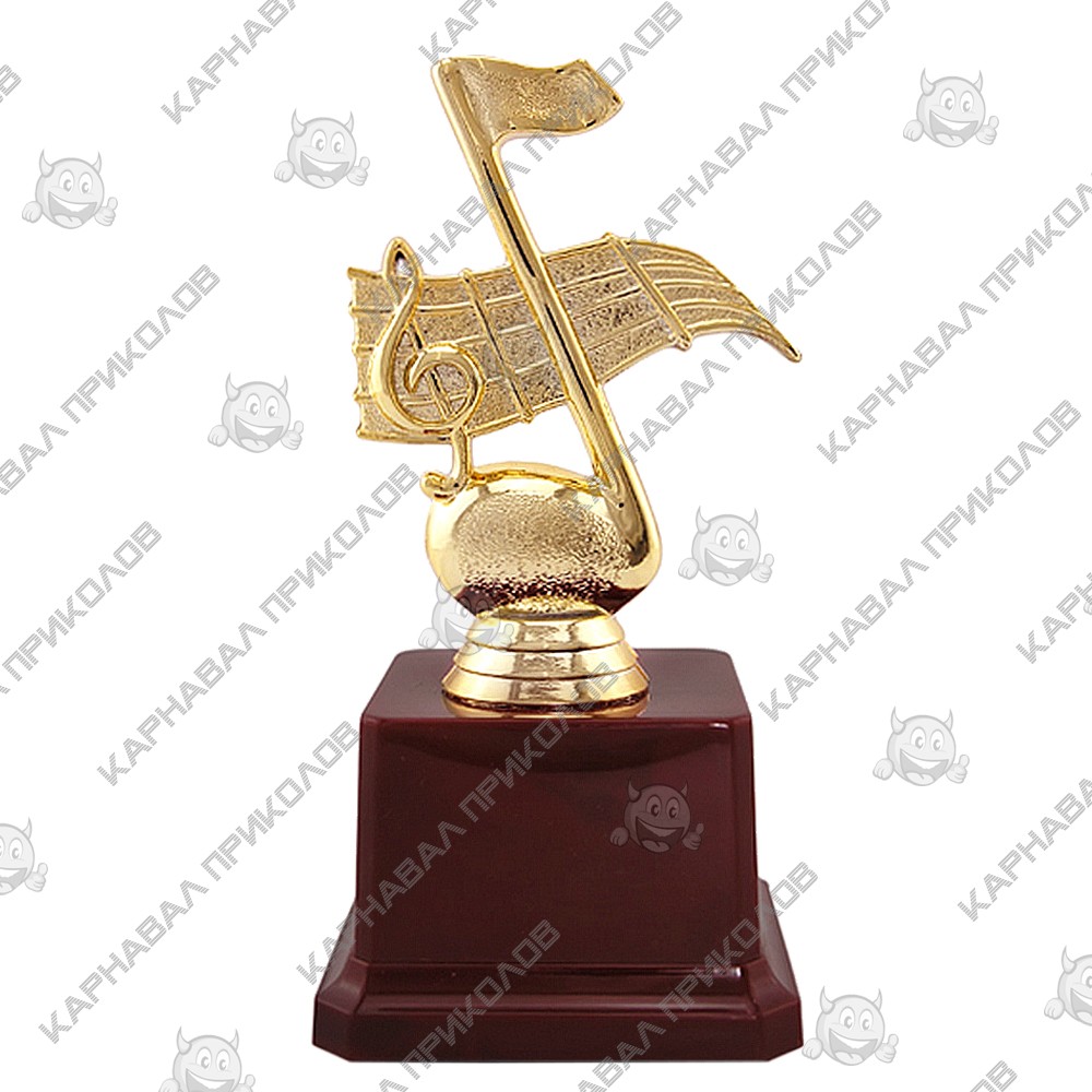 Статуэтка 57060 Золотая Нота превосходный и оригинальный подарок. Подарочная статуэтка выполнена в виде ноты с нотным станом на заднем фоне, из пластика с покрытием под золото на устойчивой подставке, такой сувенир станет отличным украшением интерьера и запоминающимся подарком. Также изготавливаем индивидуальную печать надписи на табличке для пьедестала Кубков и Статуэток размерами: 5. 2х3. 5см (цвет текста - черный, фон - золотой). На бордовом пьедестале статуэтки может присутствовать имитация мраморных разводов. Наш магазин предлагает товары оптом и для дропшипперов, вы можете оформить заказ на сайте Карнавал Приколов и задать любые интересующие вопросы менеджеру, заказав звонок на нашем сайте.