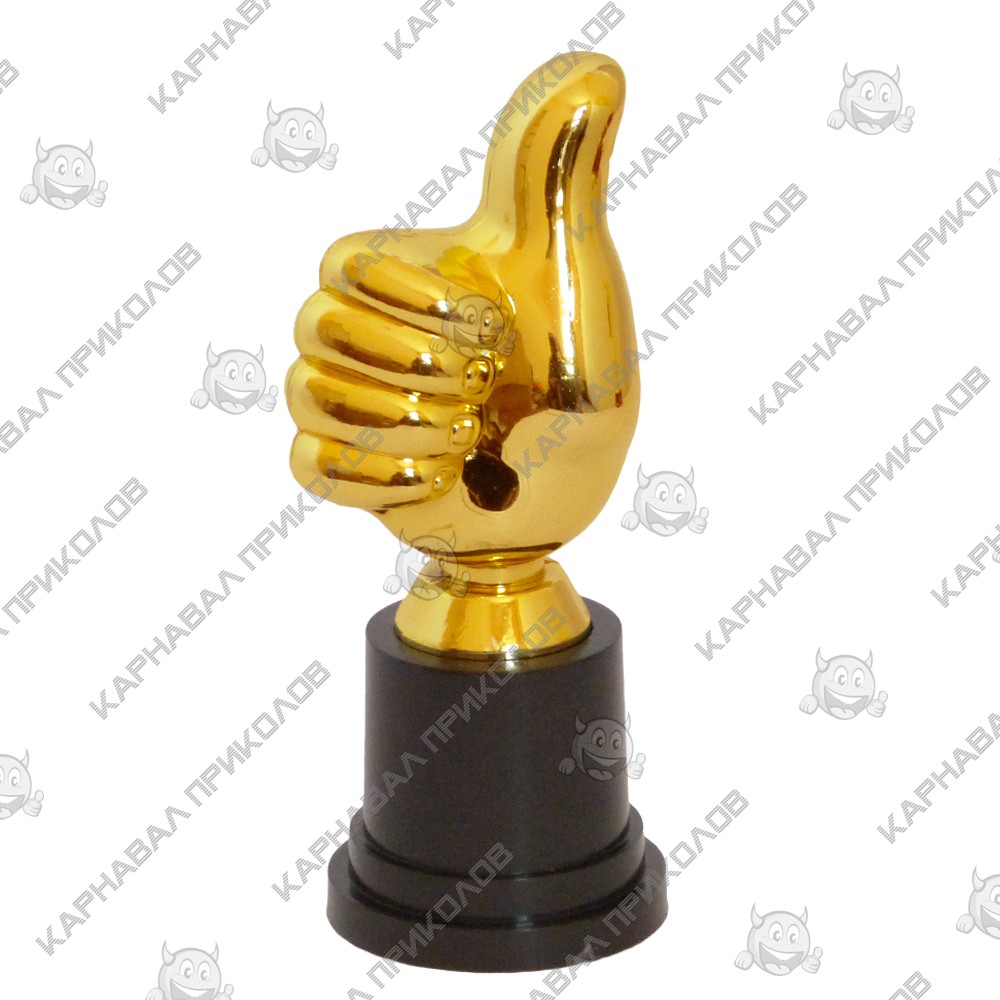 Статуэтка 57068 Лайк превосходный и оригинальный подарок. Подарочная статуэтка выполнена в виде руки сжатой в кулак с поднятым большим пальцем вверх, из пластика с покрытием под золото и устойчивой подставкой, такой сувенир станет отличным украшением интерьера и запоминающимся подарком. Статуэтка изготавливается под заказ. Обмену и возврату не подлежит. Наша компания предлагает большой выбор статуэток и к некоторым моделям возможно изготовление индивидуальной печати надписи на табличке для пьедестала Кубков и Статуэток (цвет текста - черный, фон – золотой) или на жетоне красного, зеленого или синего цвета. Возможность изготовления индивидуальной печати необходимо дополнительно уточнять у менеджера. Наш магазин предлагает товары оптом и для дропшипперов, вы можете оформить заказ на сайте Карнавал Приколов и задать любые интересующие вопросы менеджеру, заказав звонок на нашем сайте.
