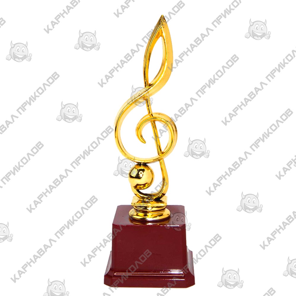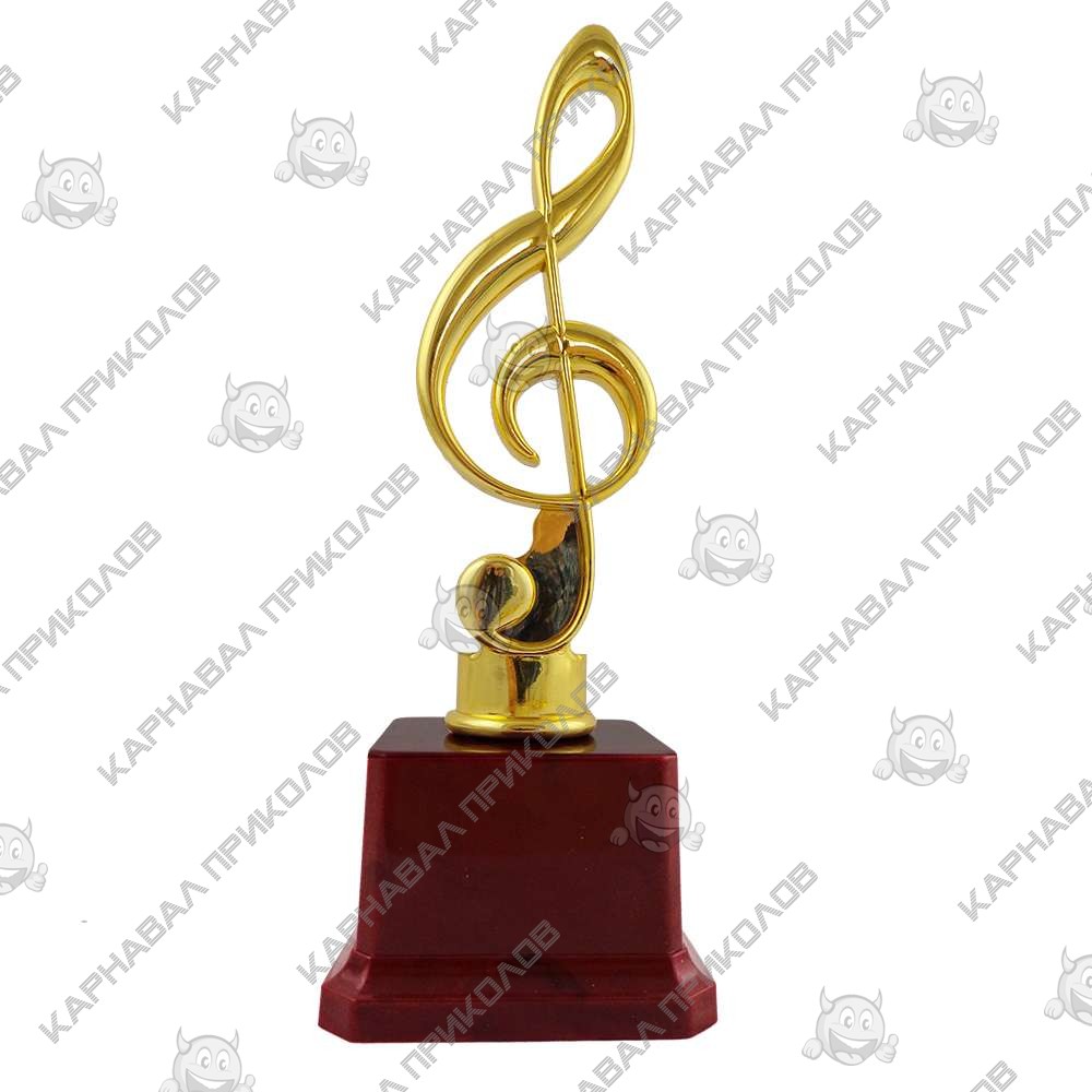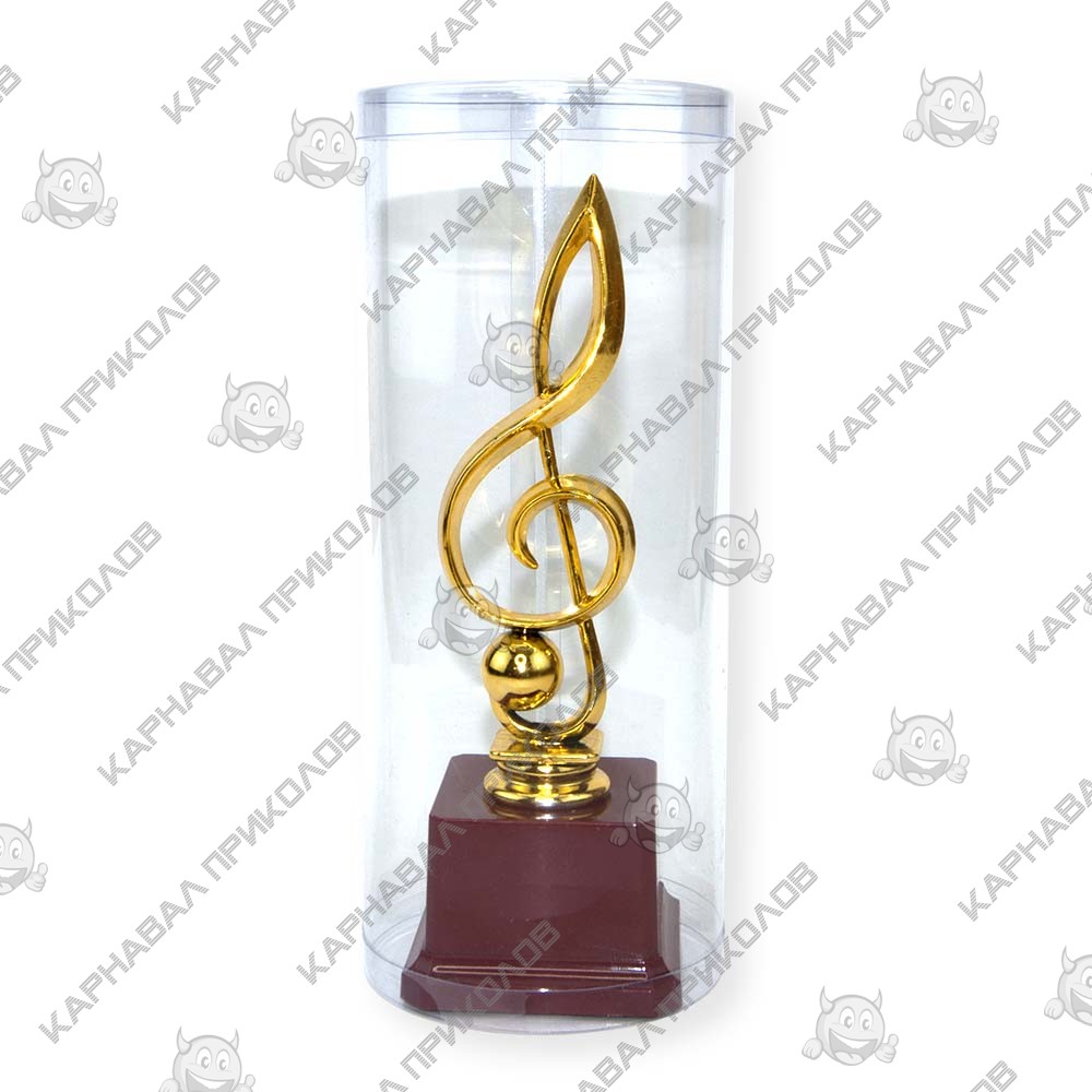Статуэтка 57070 Скрипичный ключ превосходный и оригинальный подарок. Подарочная статуэтка выполнена в виде скрипичного ключа на пьедестале, из пластика с покрытием под золото на устойчивой подставке, такой сувенир станет отличным украшением интерьера и запоминающимся подарком. Статуэтка упаковывается в индивидуальный подарочный тубус из прозрачного пластика. Уникальная упаковка разработана компанией Карнавал Приколов. Также изготавливаем индивидуальную печать надписи на табличке для пьедестала Кубков и Статуэток размерами: 5. 2х3. 5см (цвет текста - черный, фон - золотой). На бордовом пьедестале статуэтки может присутствовать имитация мраморных разводов. Наш магазин предлагает товары оптом и для дропшипперов, вы можете оформить заказ на сайте Карнавал Приколов и задать любые интересующие вопросы менеджеру, заказав звонок на нашем сайте.