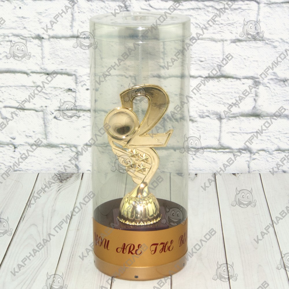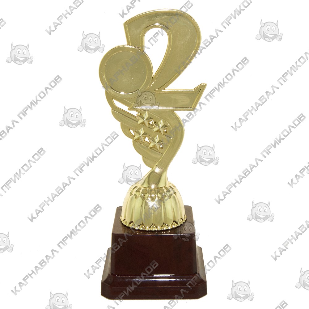 Статуэтка 57087 призовая 2 место превосходный и оригинальный подарок. Подарочная статуэтка выполнена в виде крыла со звездами по верх которого расположена цифра 2, из пластика с покрытием под золото на устойчивой подставке, такой сувенир станет отличным украшением интерьера и запоминающимся подарком. Статуэтка упаковывается в индивидуальный подарочный тубус из прозрачного пластика. Уникальная упаковка разработана компанией Карнавал Приколов. На статуэтках можно выполнить печать надписи на табличке для пьедестала Кубков и Статуэток размерами: 4. 2х2. 5см (цвет текста – черный, фон – золотой). Возможность изготовления индивидуальной печати необходимо дополнительно уточнять у менеджера. На бордовом пьедестале статуэтки может присутствовать имитация мраморных разводов. Наш магазин предлагает товары оптом и для дропшипперов, вы можете оформить заказ на сайте Карнавал Приколов и задать любые интересующие вопросы менеджеру, заказав звонок на нашем сайте.