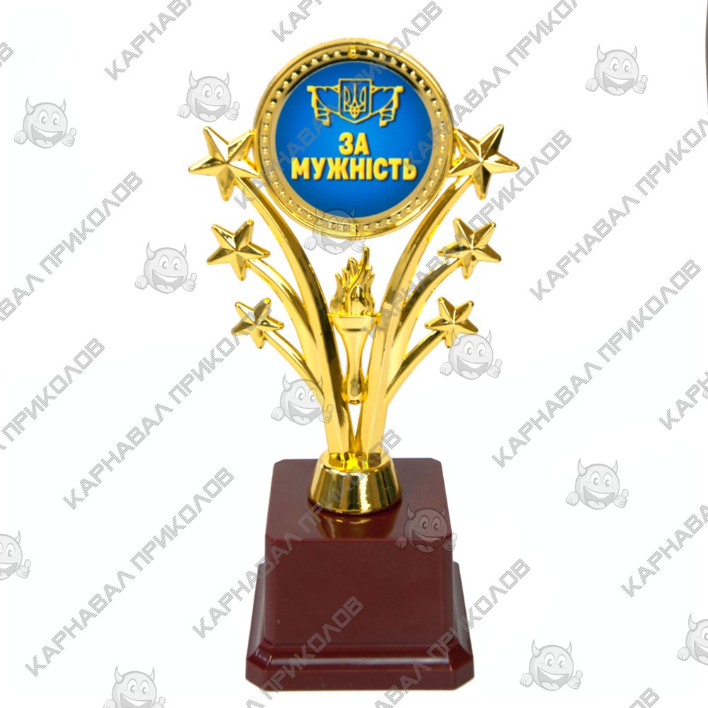 Статуэтка 57155 За мужність Звездный салют укр - отличная и оригинальная награда за мужество. Подарок символичен и необычен, говорящий как дорог для Вас поздравляемый человек! Статуэтка выполнена в виде 3D композиции салюта. Фигурка выполнена золотым цветом на классическом бордовом пьедестале. Статуэтка упаковывается в индивидуальный подарочный тубус из прозрачного пластика. Уникальная упаковка разработана компанией Карнавал Приколов. На бордовом пьедестале статуэтки может присутствовать имитация мраморных разводов. Оригинальные награды и призы в наличии и на заказ – отличная цена. Большой выбор кубков, медалей и наградных статуэток для любого повода в интернет магазине Карнавал Приколов.