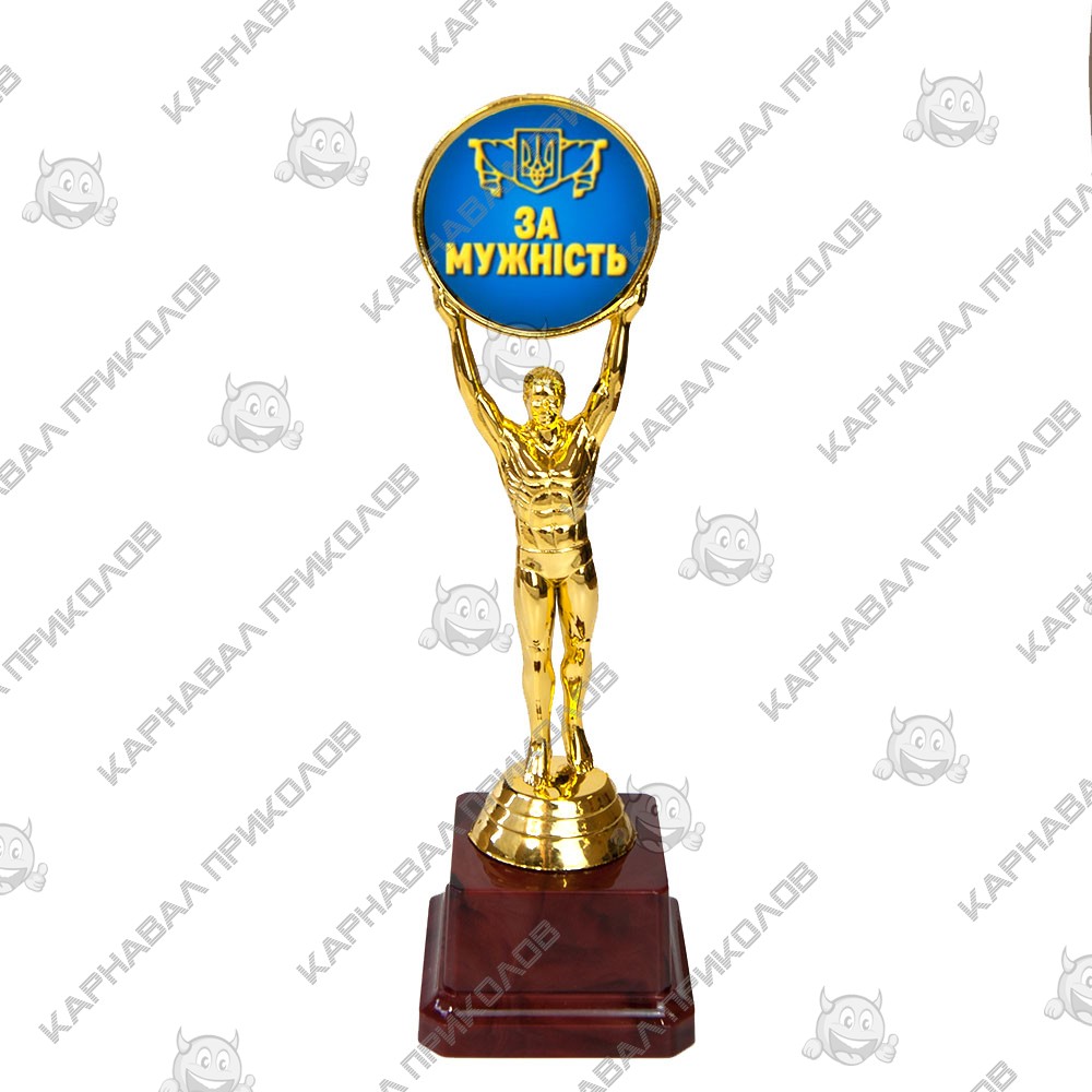 Статуэтка 57172 Человек года За мужнiсть - отличная универсальная и оригинальная награда до Дня Захисника України, ее можно вручить в знак признания заслуг, с глубоким уважением и восхищением вручите статуэтку за мужество. Статуэтка выполнена в виде 3D композиции Человека добившегося победы. Фигурка выполнена золотым цветом на классическом бордовом пьедестале. Статуэтка упаковывается в индивидуальный подарочный тубус из прозрачного пластика. Уникальная упаковка разработана компанией Карнавал Приколов. На бордовом пьедестале статуэтки может присутствовать имитация мраморных разводов. Оригинальные награды и призы в наличии и на заказ по низким ценам. Большой выбор кубков, медалей и наградных статуэток для любого повода в интернет магазине Карнавал Приколов.