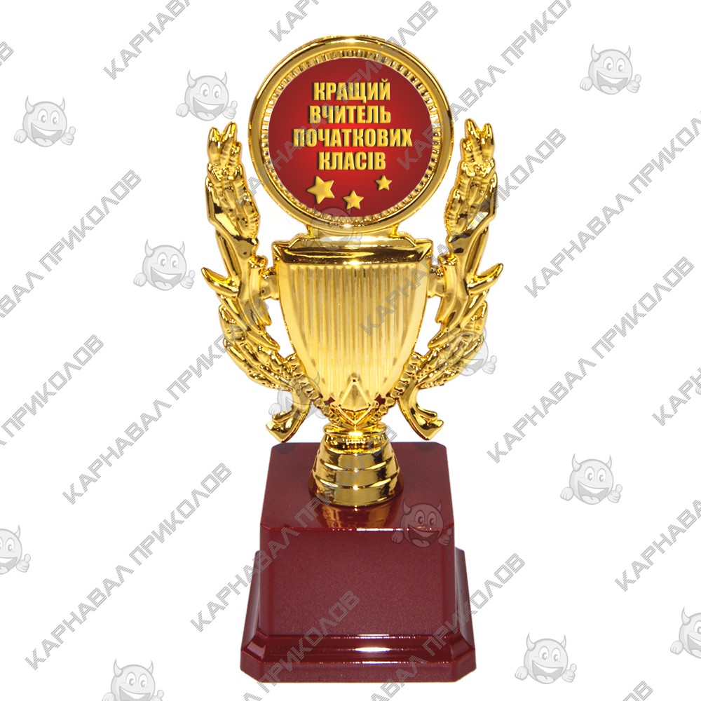 Учителя заслуживают глубокого уважения за труд и неоценимый вклад в развитие каждого ребёнка. Проявите благодарность и уважение к любимому наставнику - преподнесите памятную награду. Подарок символичен и необычен, говорящий как дорог для Вас поздравляемый человек! Статуэтка выполнена из пластика с покрытием под золото на устойчивом классическом бордовом пьедестале, с надписью Кращий вчитель початкових класів. Статуэтка упаковывается в индивидуальный подарочный тубус из прозрачного пластика. Уникальная упаковка разработана компанией Карнавал Приколов. На бордовом пьедестале статуэтки может присутствовать имитация мраморных разводов. Интернет-магазин Карнавал Приколов предлагает большой выбор подарочных кубков и статуэток с возможностью добавления текста индивидуального поздравления. Наш магазин предлагает товары оптом и для дропшипперов, вы можете оформить заказ на сайте Карнавал Приколов и задать любые интересующие вопросы менеджеру, заказав звонок на нашем сайте.
