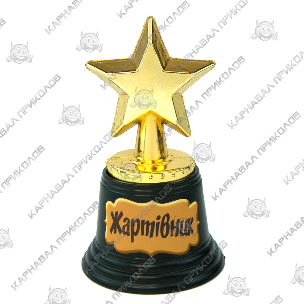 Статуэтка 570946 Звездочка Жартівник с надписью на украинском языке: Жартівник поможет подчеркнуть значимость такого человека в коллективе. Вручите статуэтку Жартівник балагуру, весельчаку, озорнику ведь без него было бы так скучно. Такой подарок непременно подарит его обладателю море позитивных эмоций. Статуэтка выполнена виде звездочке из плотного пластика с покрытием под золото в и устойчивой подставкой, такой сувенир станет отличным украшением интерьера и запоминающимся подарком. На статуэтках Звездочка могут присутствовать производственные отверстия, возникающие в процессе формовки или литья. Отверстия малы и находятся в тех местах, где не влияют на общий вид изделия. Фото примера можно просмотреть в галерее. Статуэтка изготавливается под заказ. Обмену и возврату не подлежит. Наша компания предлагает большой выбор статуэток и к некоторым моделям возможно изготовление индивидуальной печати надписи на табличке для пьедестала Кубков и Статуэток (цвет текста - черный, фон – золотой) или на жетоне красного зеленого или синего цвета. Возможность изготовления индивидуальной печати необходимо дополнительно уточнять у менеджера. Наш магазин предлагает товары оптом и для дропшипперов.