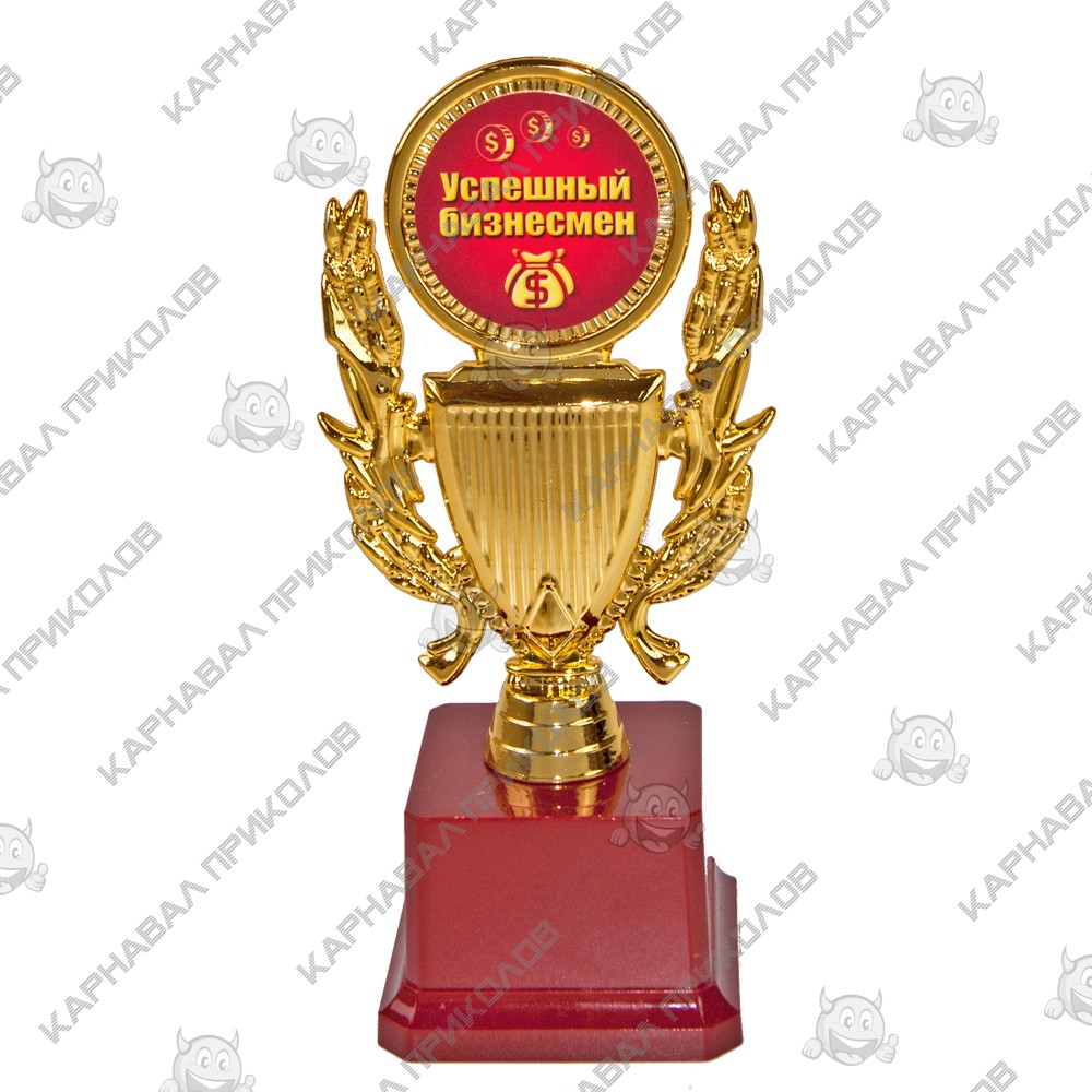 Статуэтка 57113 Успешному бизнесмену Кубок с венком - отличная и оригинальная награда для того, кто занимается бизнесом, будь то предприниматель или коммерсант. Подарок символичен и необычен, говорящий как дорог для Вас поздравляемый человек! Статуэтка выполнена в виде 3D композиции кубка с лавровым венком. Фигурка выполнена золотым цветом на классическом бордовом пьедестале. Статуэтка упаковывается в индивидуальный подарочный тубус из прозрачного пластика. Уникальная упаковка разработана компанией Карнавал Приколов. На бордовом пьедестале статуэтки может присутствовать имитация мраморных разводов. Оригинальные награды и призы в наличии и на заказ – отличная цена. Большой выбор кубков, медалей и наградных статуэток для любого повода в интернет магазине Карнавал Приколов.