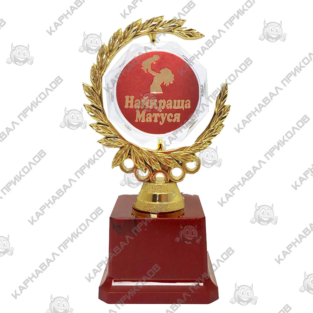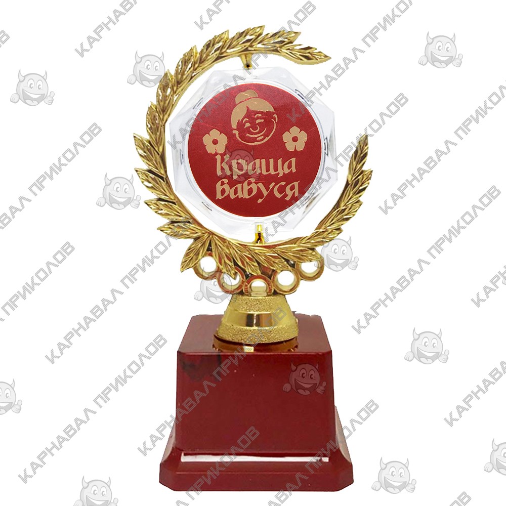 Когда нам предстоит отпраздновать какое либо торжество или особое событие, мы начинаем заранее обдумывать и рассуждать - как же его сделать веселым, задорным и необычным? Ну и в вообщем, одним словом, все наши усилия и идеи нацелены на то, что бы этот день, и этот праздник, стал незабываемым днем, насыщенный оригинальностью и полон неожиданностей. Абсолютно любой праздник и любое торжество пригодно к всевозможным розыгрышам, конкурсам, веселым номинациям и церемониям, такое можно организовать как на корпоративные мероприятия с коллегами, так и на день рождение, новый год, 8 марта, именины и другие всевозможные праздники. Ну а как же обойдется ваша церемония и номинация, без различных кубков, медалей, дипломов и прочей наград? С ними призами, это будет не только уникально и оригинально, это будет весьма интересно, ведь не только спортсмены и прославленные личности могут принимать награды. Рядом с нами каждый день находятся люди, которые не меньше заслуживают вашего уважение и достойных вознаграждений, по-этому, вы, без проблем сможете уделить внимание вашим близким, и преподнести им заслуженною долгим временем, и настоящими усилиями - награду. Подарочная статуэтка выполнена в виде венка из лавровых листьев изпластика с покрытием под золото внутри, которого расположен прозрачный кристалл и устойчивой подставкой. Кристалл крутиться вокруг своей оси на 365 градусов. Статуэтка упаковывается в индивидуальный подарочный тубус из прозрачного пластика. Уникальная упаковка разработана компанией Карнавал Приколов. На бордовом пьедестале статуэтки может присутствовать имитация мраморных разводов.