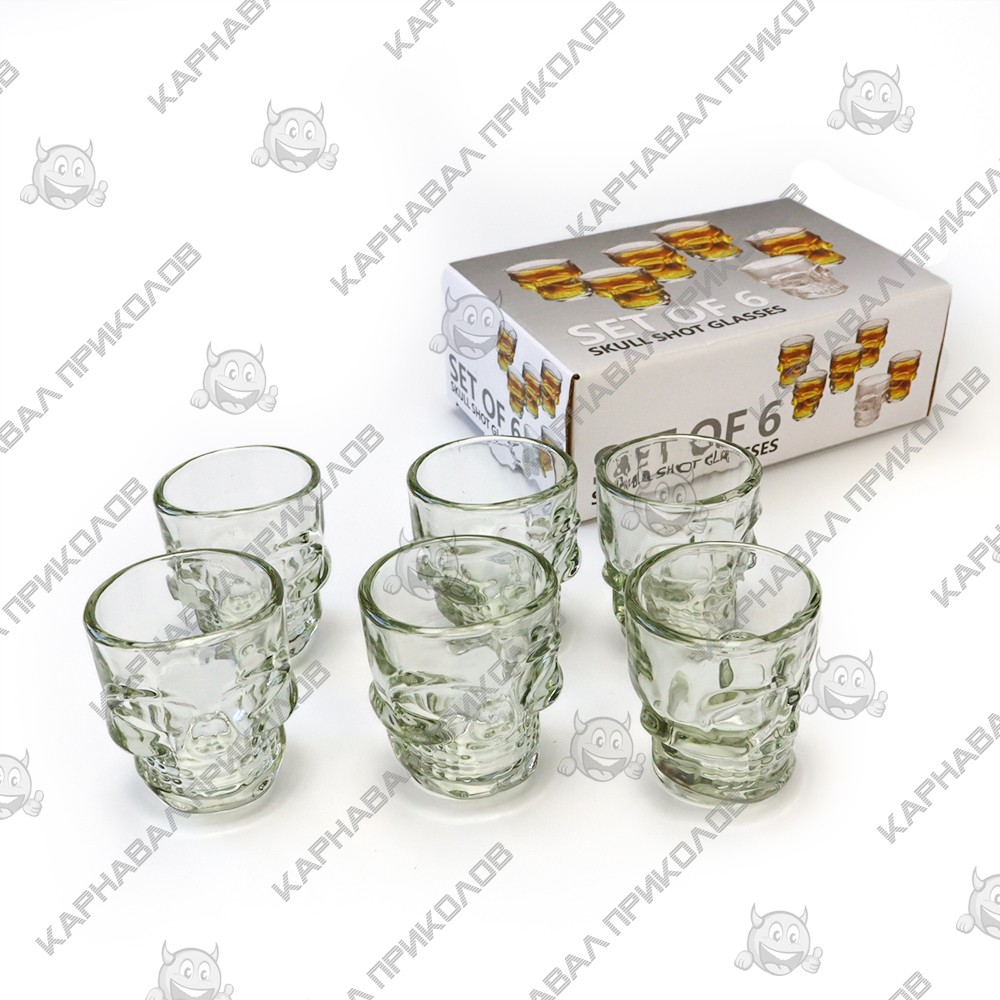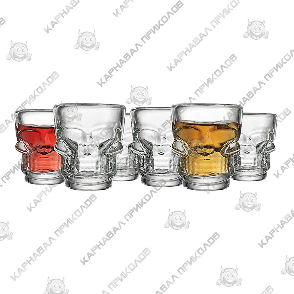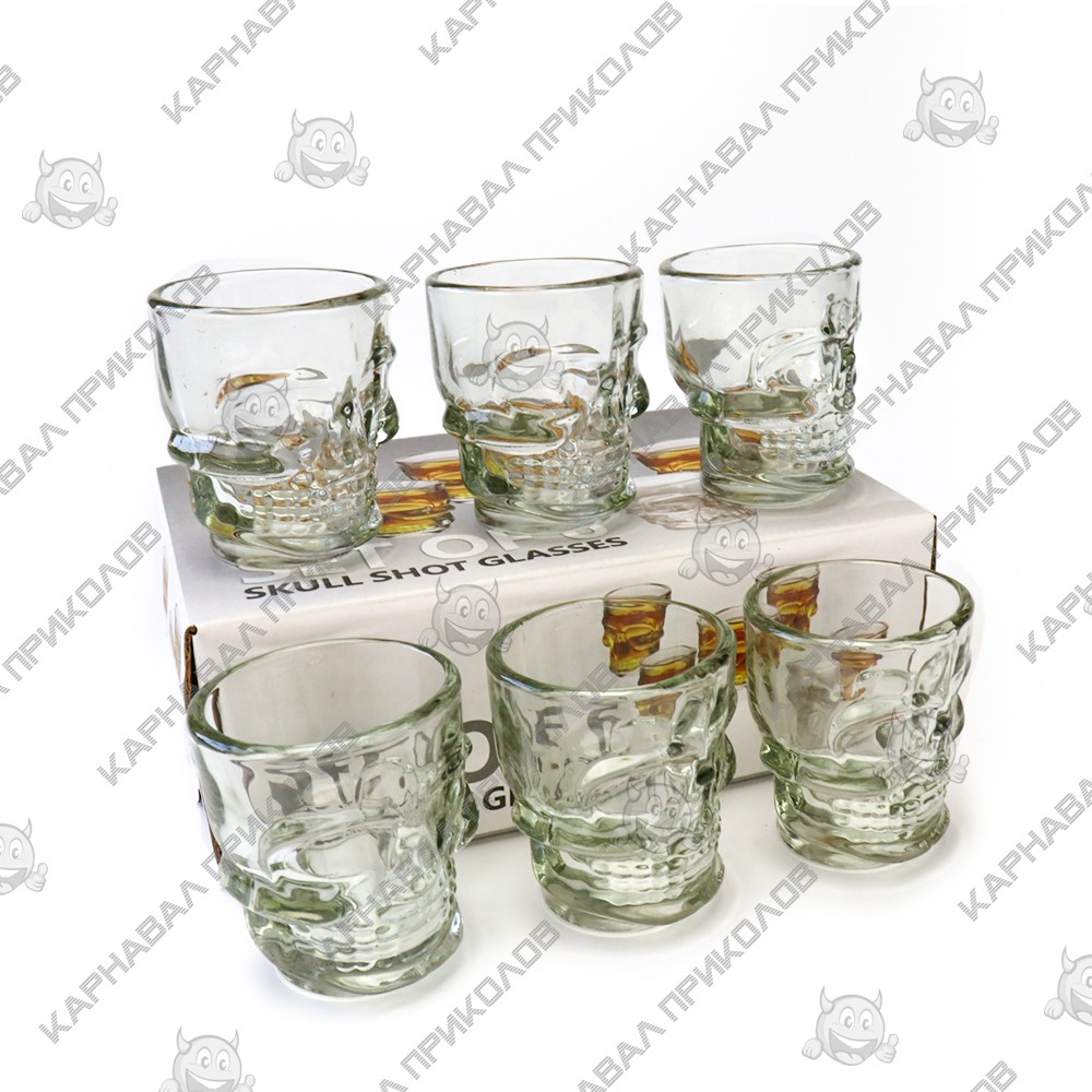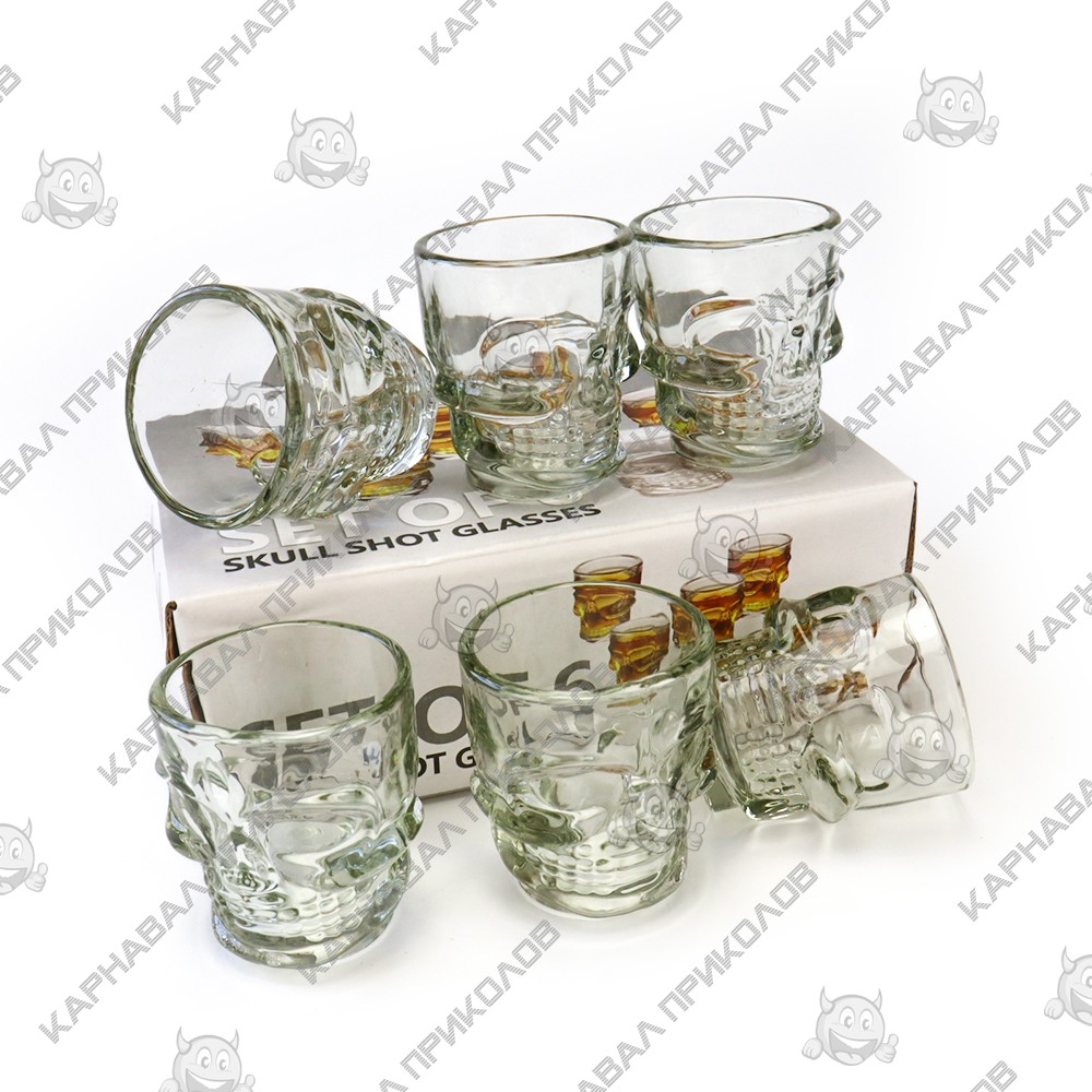 Набор рюмок Черепа - это оригинальный набор из 6 небольших рюмок для крепких напитков, который станет настоящим сюрпризом для веселой компании. А действительно, в мужской компании, употребляя согревающие напитки из таких замечательных рюмок, есть о чем подумать, и о чем подумать. Рюмки выполнены из высококачественного стекла, имеют стильный оригинальный вид. Они станут оригинальным украшением стола на Ваших вечеринках и праздниках. Набор рюмок Черепа может быть прекрасным недорогим подарком для любого мужчины, друзей и родственников. Купить настольные алко игры оптом Вы можете в интернет-магазине Карнавал Приколов по самым выгодным ценам. Купив Рюмки Череп в нашем интернет-магазине Вы получаете не только качественный товар, а и 100% позитивных впечатлений от приобретения. Среди нашего широкого ассортимента товаров, Вы найдете множество необычных и оригинальных подарков для различных мероприятий.