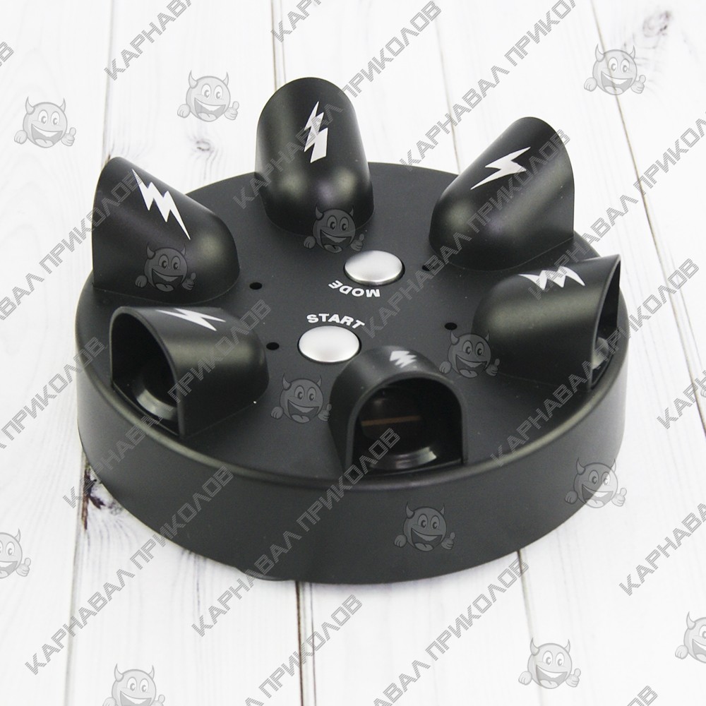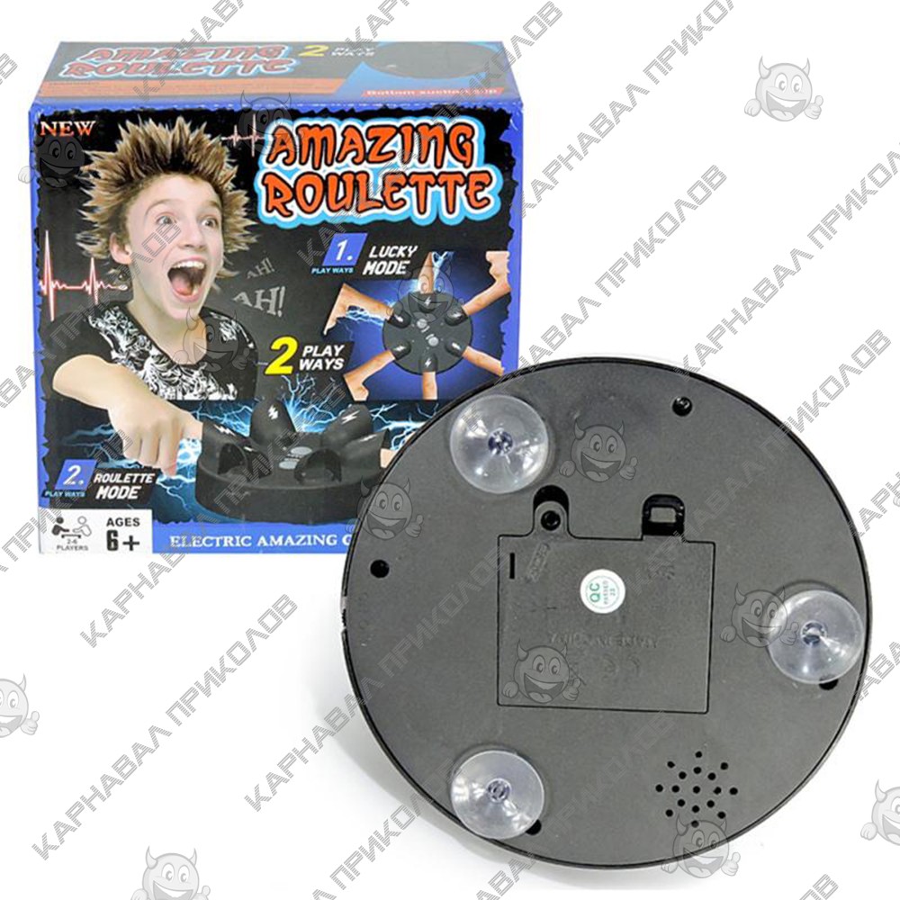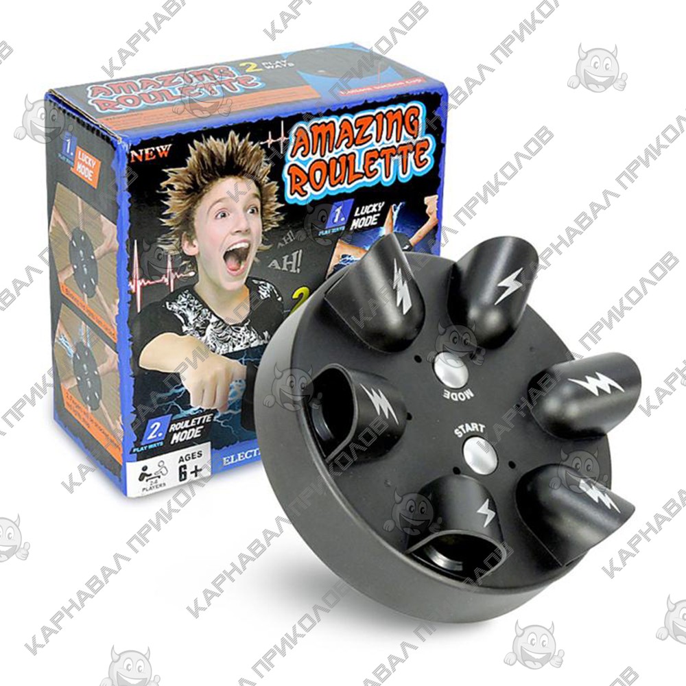 Надоели карточные настольные игры? Ищите что-то задорное для развлечения компании? Тогда Вам именно к нам. Предлагаем Вашему вниманию веселую и оригинальную игру для компании Рулетка Шок. Принцип игры довольно прост. На игровом поле 6 отверстий, в которые игроки помещают пальцы и игра начинается. Игровая рулетка воспроизводит реалистичный звук шара настоящей рулетки из казино. Как только звук прекратится, один из игроков получает разряд тока. Успеете ли вы вовремя убрать руку? Имеется возможность выбора количества игроков и регулятор силы тока. Игра на 2-6 человек. Работает от 3 ААА батареек, в комплекте не предоставляются. Широкий ассортимент товаров для вечеринке на сайте интернет-магазина Карнавал Приколов. Спеши заказать игру Рулетка Шок и проверить свою удачу.