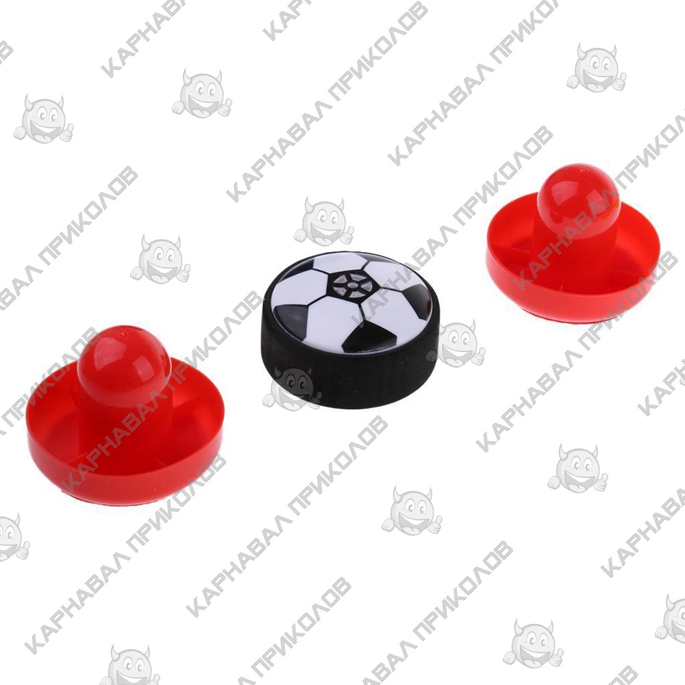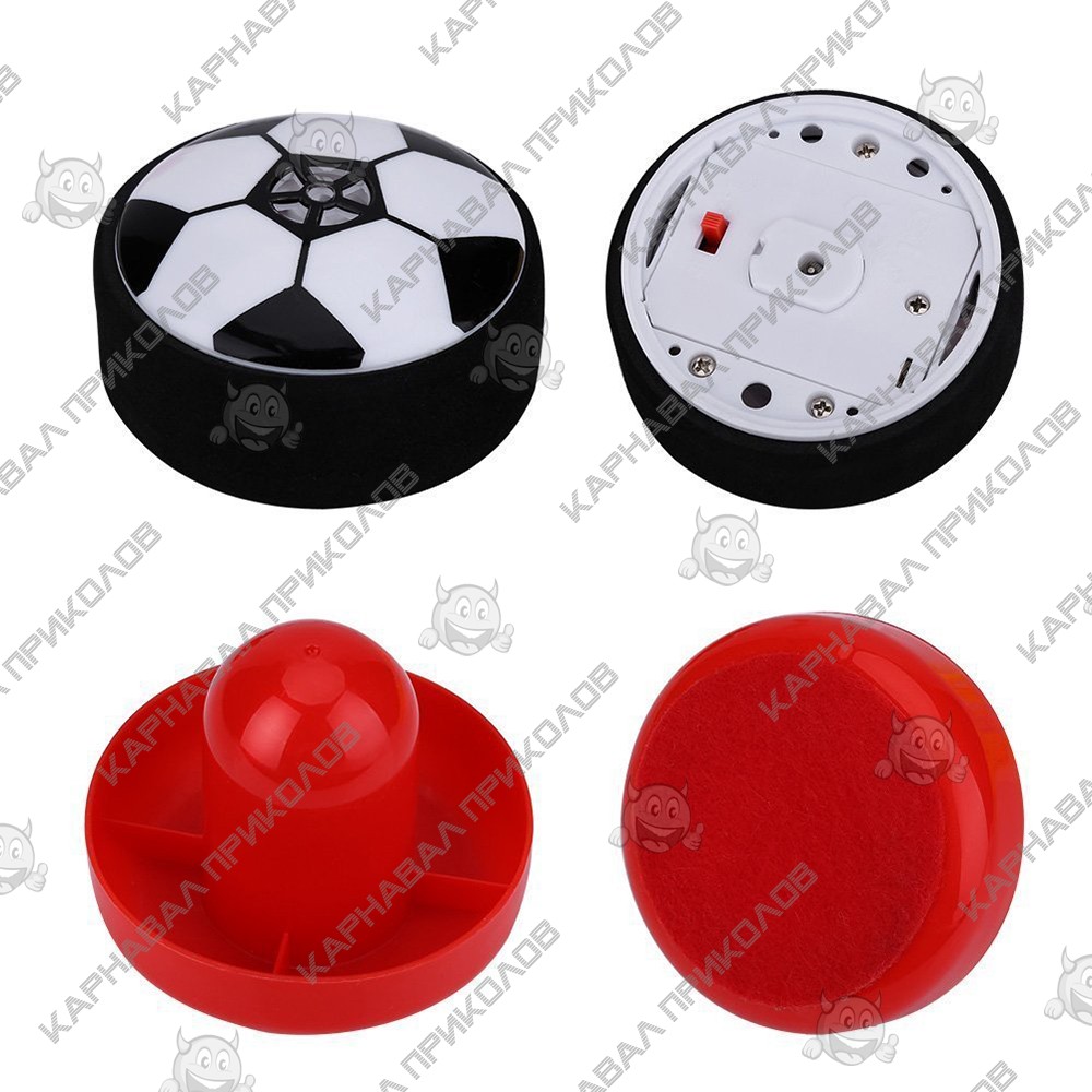 Играть дома мячом не самая хорошая затея, ведь очень легко запустить его в цветочный горшок, телевизор или окно. С летающим футбольным мячом HoverBall никаких незапланированных разрушений интерьера не случится. Мяч Hover Ball специально разработан для безопасной игры в помещении. Мощный вентилятор заставляет аэромяч парить по твердым поверхностям. По форме он представляет собой полусферу, которая двигается на воздушной подушке над поверхностью пола. Мягкий бампер по периметру игрушки защищает мебель и другие предметы от ударов. Летающий мяч Hover Ball был разработан специально для развлечения в помещении. Он оснащен толстым и мощным пенным бампером, который обеспечивает безопасность вашей мебели, стен и других ценностей. Он безобидно отскакивает от ножек стульев, стен и домашних животных, не оставляя царапин, сколов и отметок. Hover Ball оснащен LED-подсветкой, которая активируется при включении аэромяча и меняет несколько цветов по таймеру! Батареи у HoverBall расположены так, чтобы обеспечить равномерное распределение веса. Благодаря этому летающий мяч HoverBall и может парить в воздухе. Нижняя часть летающего мяча HoverBall закрыта защитной панелью. Открыв эту панель, вы увидите батарейный отсек. Hover Ball прекрасно работает на любых гладких поверхностях, включая ковры с небольшим ворсом, деревянные полы, линолеуму, ламинат, паркет и ковролин. Комплектация: мяч – 1шт., клюшка- 2шт, ворота – 2 шт, ограда: длинные рейки (35см)- 4шт, короткие рейки (15см) -4шт, угловые крепежи – 4 шт, удлинители – 6 шт, присоски – 10 шт. Текстильное поле с футбольной разметкой в комплектацию не входит. Работает от батарейки ААА (2 шт) в комплект не входят. Для того чтобы вставить или заменить батарейку, необходимо воспользоваться крестовой маленькой отверткой (в комплект отвертка не входит).