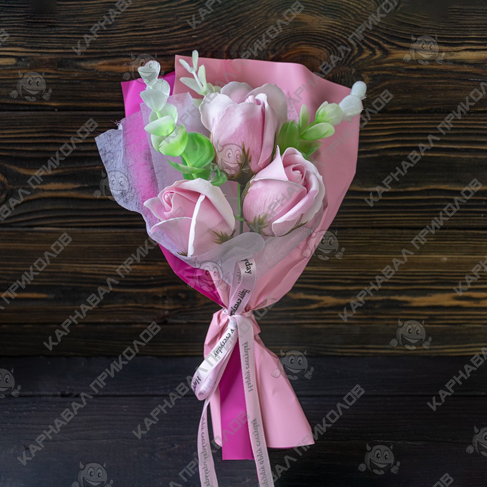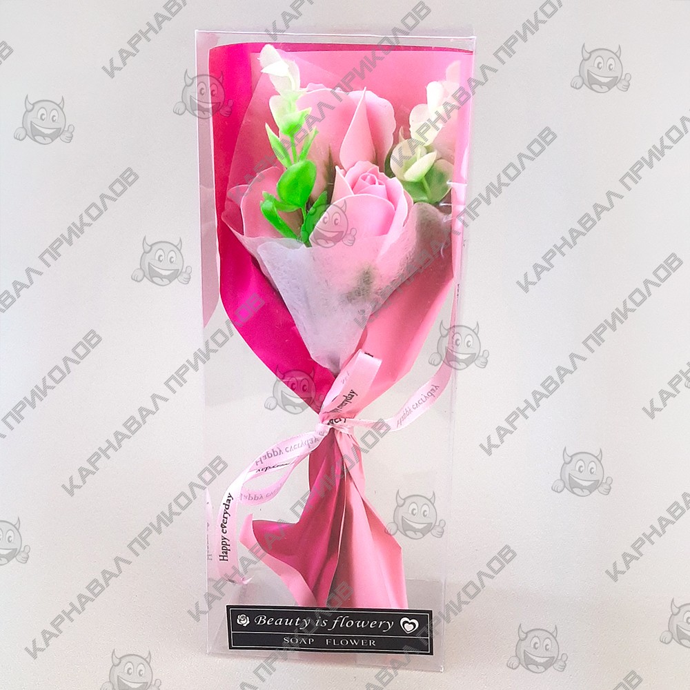 Мыло – это то, чем мы пользуемся каждый день, не задумываясь о том, что помимо косметических и гигиенических у мыла есть еще и эстетические свойства. Между тем ценители мыльного искусства уже нашли, как применить это в интерьере и в быту. Букет роз из мыла Beauty is flowery 12576 (розовый) может не только заменять собою мыло, но и выполнять декоративную функцию, к тому же, благодаря фирменной упаковке, для его размещения не требуется ваза или какой-либо сосуд. Цветы из мыла создадут торжественную атмосферу и наполнят помещение. Мыльные розы украсят ванную комнату, прихожую, холл и окутают помещение нежным изысканным ароматом. Гармонично будут смотреться на столах в кафе и ресторанах, салонах красоты и офисах. Такие композиции будут радовать глаз, вызывать восторг и улыбку спустя многие недели после праздника. Букет роз из мыла Beauty is flowery 12576 (розовый), может простоять несколько лет, если его использовать не по назначению, а как элемент декора. Мыльные цветы хранятся около 3-х лет, если соблюдая правила ухода: не ставить под лампу и люстру, не поливать, можно обработать эфирными маслами для придания аромата. После того как он достаточно порадует глаз, его можно будет наконец-то применить по назначению, как простое мыло. Мыльные цветы могут использоваться в бане, сауне или горячей ванне. Во время использования распространяют приятный аромат только что срезанных цветов. Лепестки помещаются в наполненную водой ванну или растираются в ладонях до образования пены. Цветы из мыла изготовлены из высококачественной мыльной основы с применением безопасных ненавязчивых отдушек. Розы - настоящий шедевр мыльного искусства. В изготовлении этих уникальных роз используются лепестки, которые изготовлены из полотна вспененного мыла. Цветы создаются по особой технологии, поэтому лепестки выглядят как живые, и их нежный аромат сохраняется очень долго. Максимальная детализация и схожесть с настоящими живыми цветами придает им особое изящество.