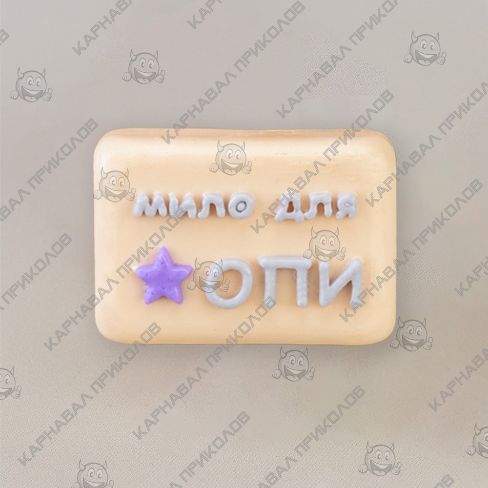Декоративное Мыло для ОПИ из мыла 75г 12634 (бежевое): Гигиена с иронией от Карнавал Приколов! Ищете способ добавить иронии и улыбок в повседневную рутину? Представляем вам Декоративное Мыло для ОПИ из мыла – уникальный сувенир от Карнавал Приколов, который точно не оставит равнодушным! Это уникальный сувенир, который сломает все стереотипы и добавит щепотку пикантного юмора в повседневную жизнь. Оно создано для тех, кто ценит иронию, не боится шутить и готов к самым неожиданным сюрпризам! Мыло выполнено в виде аккуратного брусочка приятного бежевого цвета. Главная особенность — это, конечно, надпись: крупными белыми буквами выведено Мило для, а ниже красуется надпись со звездочкой ОПИ. Что в свою очередь передает юмористический контекст подарка. Каждое мыло бережно упаковано в прозрачную пленку, перевязанную яркой зеленой ленточкой, что придает ему законченный и веселый подарочный вид. Несмотря на всю свою шуточность, это полноценное, качественное мыло весом 75 грамм, которое можно использовать по прямому назначению для гигиены рук или, как намекает название, для ухода за особой частью тела. Как и вся наша продукция, это мыло изготовлено с вниманием к деталям и контролем качества, гарантируя, что ваш юморной подарок прослужит долго. Декоративное Мыло идеальный подарок для друзей с отменным чувством юмора, особенно на мальчишник, девичник, или любой другой повод, где ценятся смелые и остроумные шутки. Разместите его в ванной комнате или туалете, чтобы добавить нотку иронии и создать повод для улыбок у всех, кто его увидит. Мыло для ОПИ - отличный реквизит для веселых розыгрышей и создания непринужденной, позитивной атмосферы. Прекрасный способ в шуточной форме напомнить о важности тщательного ухода за всеми частями тела. Пусть гигиена будет не только полезной, но и веселой! С Декоративным Мылом для Попы от Карнавал Приколов ваш подарок будет самым обсуждаемым!