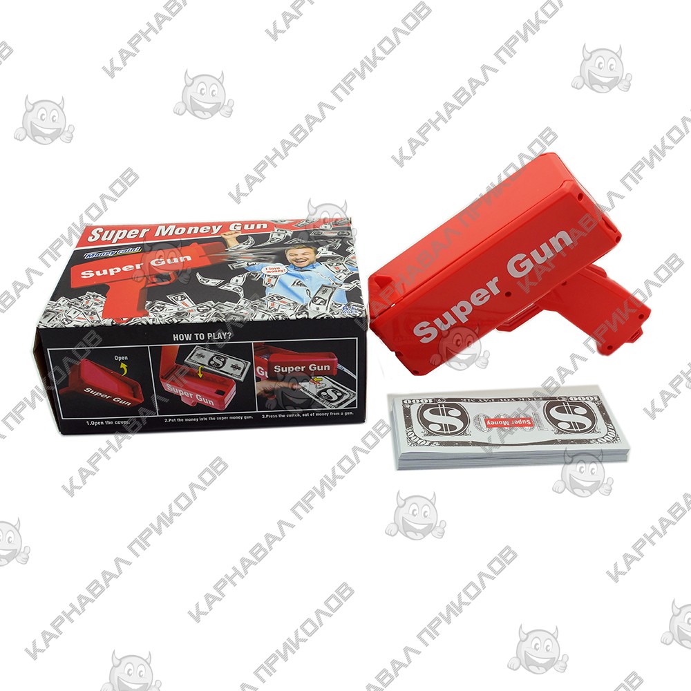 Денежный пистолет Cash Cannon - который стреляет деньгами. Всемирно популярен и каждый кто купил, от маленьких детей до взрослых, не могут нарадоваться этому забавному изобретению. Оригинальный подарок, идеально подойдет для клуба, вечеринок, эффектной фотосессии и видео. Качественный и прочный механизм делает мощные выстрелы в радиусе до 3 метров. В комплекте идут 100 купюр для стрельбы. Пистолет стреляет любой бумагой по размеру, настоящими деньгами тоже, не обязательно только теми, что в комплекте. Интернет магазин Карнавал Приколов предлагает купить интересные и оригинальные подарки по доступным ценам. Ваш подарок будет радовать своего нового обладателя еще очень долго, даря улыбку каждый день!