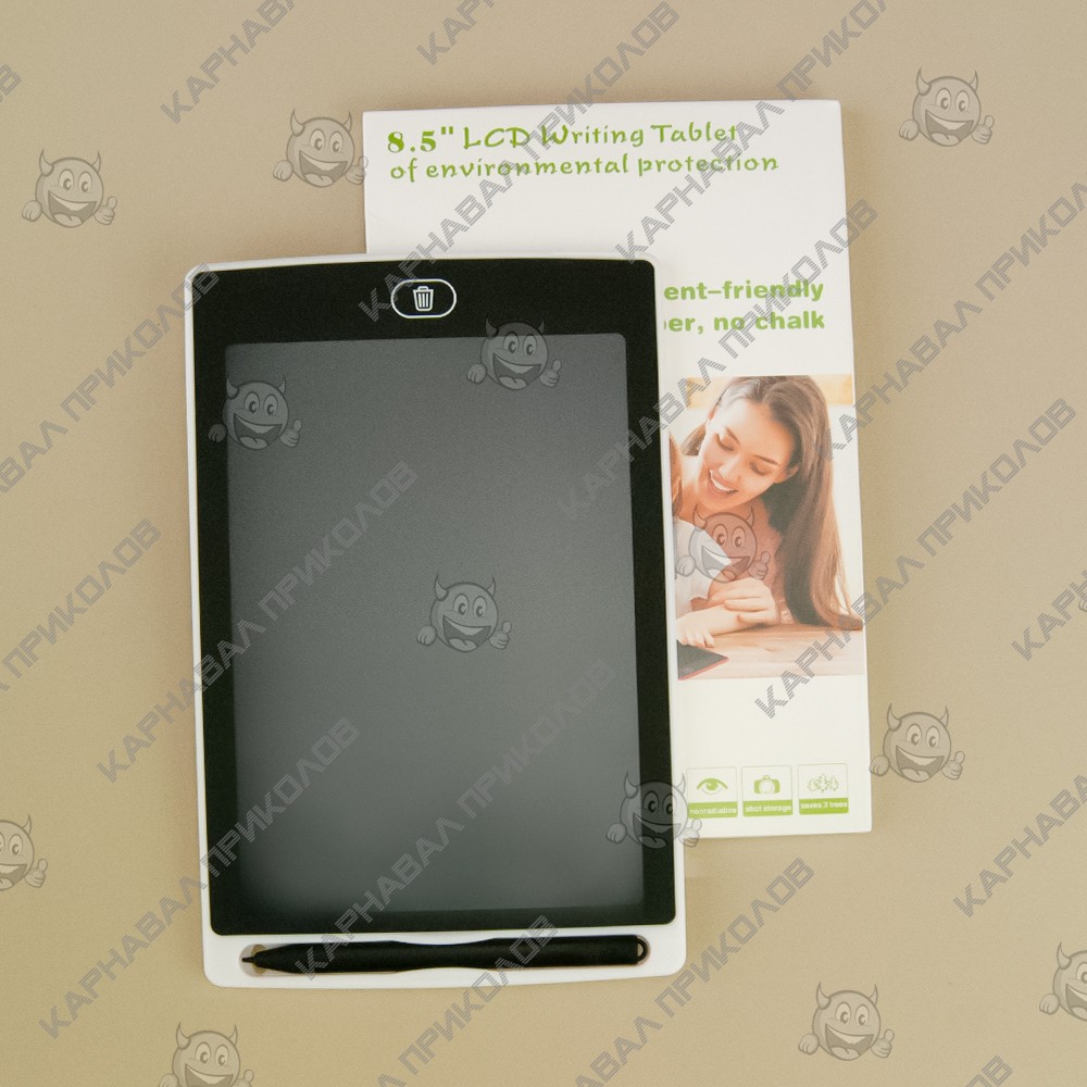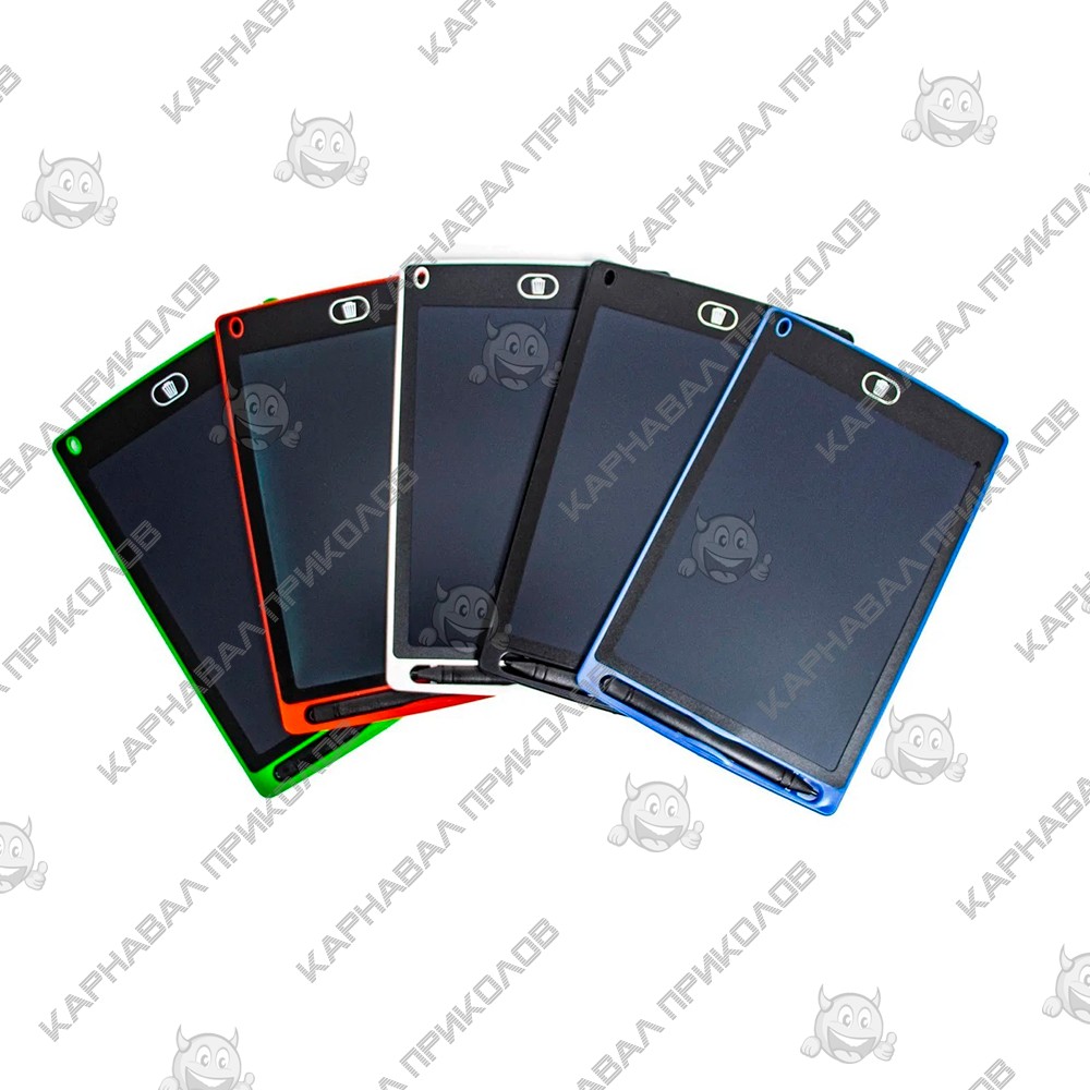 Графический планшет LCD Writing Tablet 8,5 дюймов - многофункциональный электронный учебный планшет для рисования для детей и взрослых. Планшет сочетает в себе функции альбома для рисования, блокнота для заметок или игровой школьной доски. LCD дисплей устройства создает эффект рисунка на бумаги. Детский планшет для рисования включает в себя специальный стилус, которым можно писать и рисовать на поверхности. Стереть рисунок можно нажав на кнопку, внизу планшета, и надпись исчезнет. Для включения устройства и начала работы необходимо с обратной стороны планшета перетащить рычажок в положение, раскрытого замка. Поле завершения использования планшета необходимо перевести рычажок в положение закрытого замка.