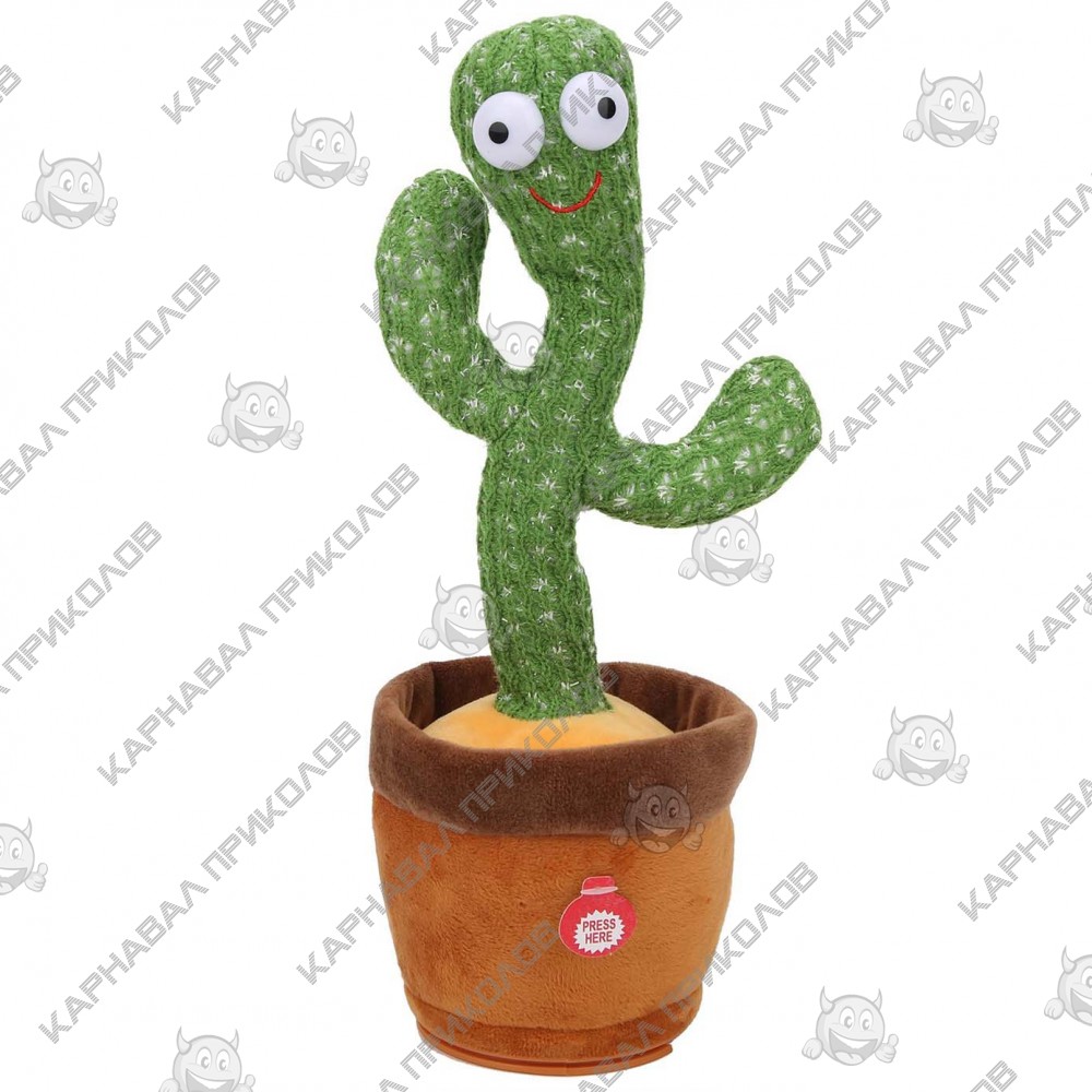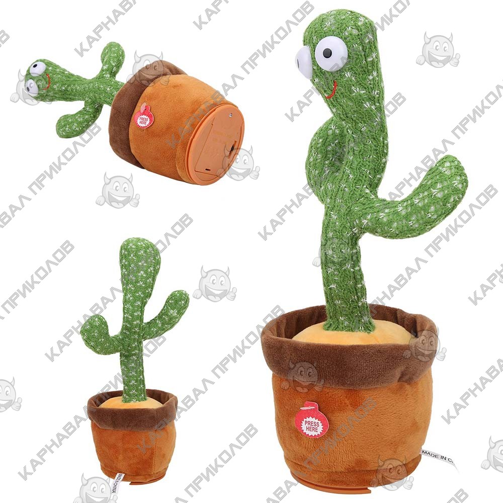 Интерактивная плюшевая игрушка танцующий Кактус повторюшка - новая оригинальная музыкальная говорящая игрушка. Плюшевая игрушка имеет форму милого улыбающегося кактуса, который умеет петь, танцевать, светиться и повторять за Вами, чем подарит Вам и Вашим детям просто нереальные эмоции. Веселые песни, а их 120 штук, которые поет танцевальный кактус, создают живую и уютную атмосферу в Вашем доме. Интерактивная плюшевая игрушка танцующий Кактус повторюшка- это лучший подарок, который надолго увлечет как детей, так и взрослых, и подарит массу радостных эмоций. Что умеет кактус? Петь - поет 120 песен, которые создадут уютную атмосферу Танцевать - отлично танцует в ритме песен Светиться - кактус имеет встроенную лед подсветку, которая еще больше привлекает внимание. Повторять за Вами - кактус умеет записывать Ваш разговор и воспроизводить его с видоизмененным голосом танцуя и светясь (Обращайте внимание на эту функцию, у большинства аналогов этой игры она отсутствует) ОСОБЕННОСТИ ИГРУШКИ - Интерактивная плюшевая игрушка танцующий Кактус повторюшка - игрушка хороша для дошкольного воспитания, поскольку кактус танцует в ритме, привлекая внимание детей завлекая их к игре. Благодаря LED подсветке кактус может быть замечательной игрушкой-ночником Разнообразие функций обеспечит длительный интерес к ней Может быть отличным подарком не только детям, но и взрослым, поскольку веселая музыка и танцы очень подходят для создания приятной атмосферы на рабочем месте отличный дизайн игрушки хорошо вписывается в интерьер как декоративный элемент. Для зарядки используется USB-шнур, который идет в комплекте. Отверстие для подзарядки находится на нижней части игрушки. Для включения игрушки на задней части нужно перевести выключатель в режим ON. Для переключения между режимами воспроизведения мелодий и режимом повторения необходимо нажать на кнопки сбоку для переключения. Если Вы думаете, что же можно подарить на тот или иной праздник, то этот кактус отличный вариант. Интерактивная плюшевая игрушка танцующий Кактус повторюшка станет развлечением не только для детей, но и для взрослых!