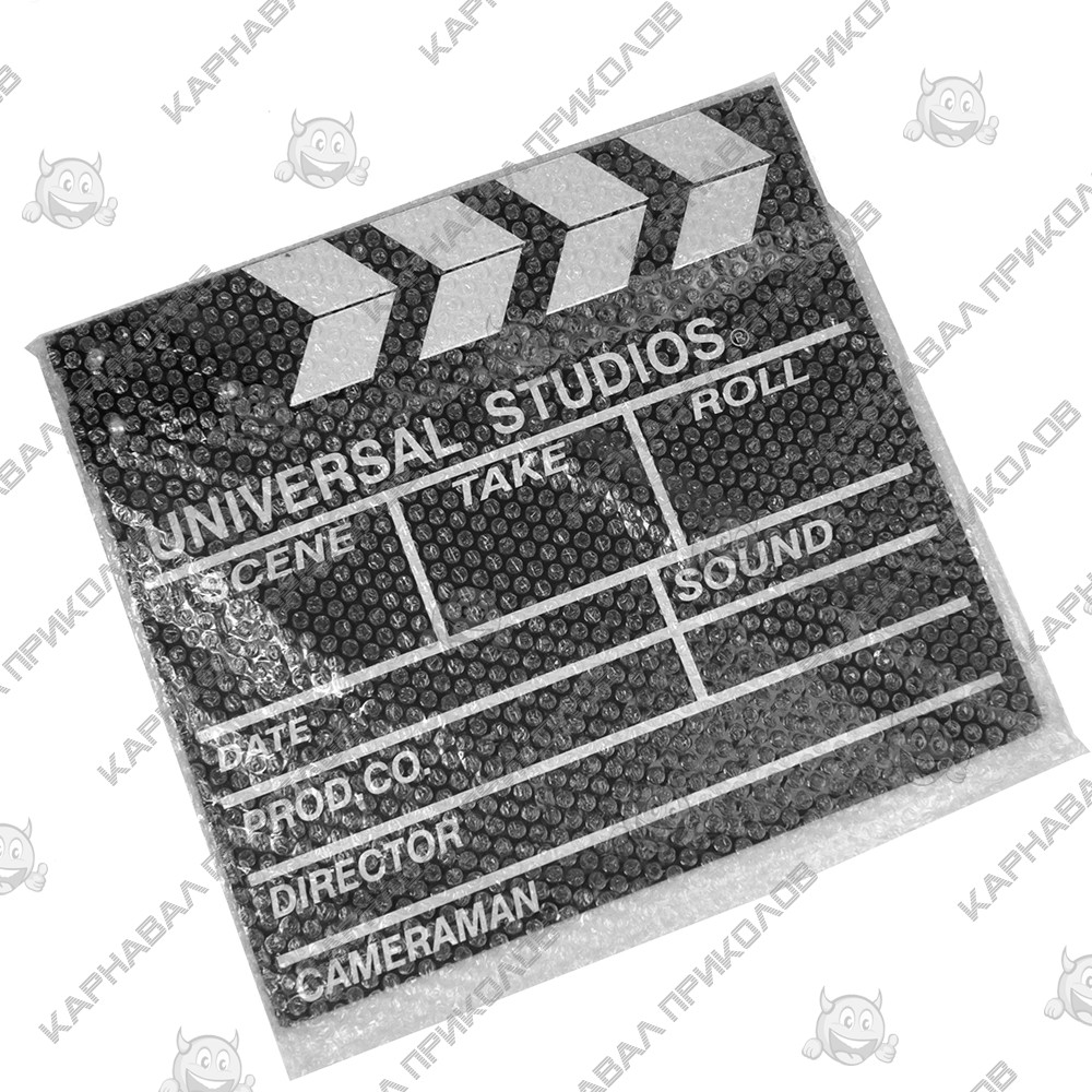 Кинохлопушка - аксессуар, применяемый при сьемке. Атрибут используется для систематизации отснятого материала и записанных фонограмм, обозначая номера отснятых сцен и дублей. Во время съёмки каждого дубля, после команды Мотор! ассистент помещает хлопушку с надписями перед объективом, и отчётливо произносит основные данные о номере сцены и дубля вслух, после чего производит один хлопок и убирает доску из кадра. Купив, кинохлопушку можно использовать для проведения вечеринки в стиле Голливуд или Оскар, а также для видеосьемок. Интернет магазин Карнавал Приколов предлагает купить интересные и оригинальные подарки по доступным ценам. Ваш подарок будет радовать своего нового обладателя еще очень долго, даря улыбку каждый день!